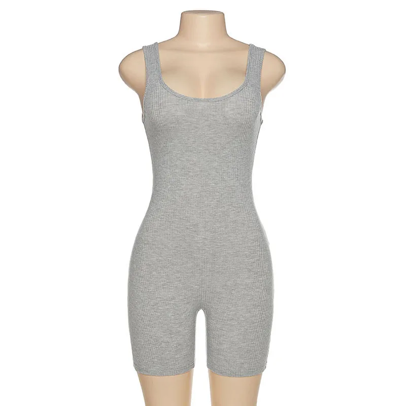 2020 קיץ נשים סקסי סרבל Streetwear שרוולים Bodycon מוצק סרוג ספורט סרבלי Romper סרבל לנשים