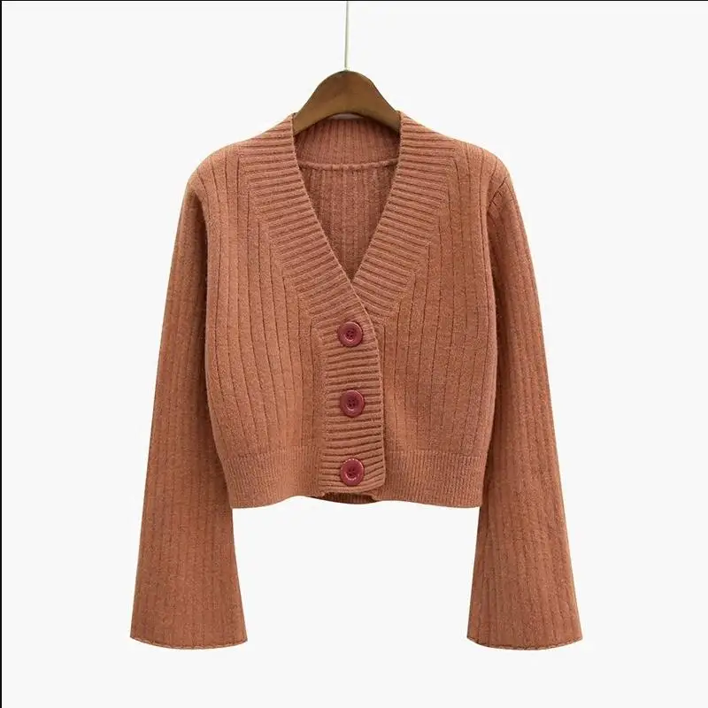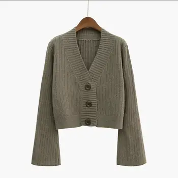 חדש V צוואר בנות אפודה בסוודרים סתיו חורף קצר סרוג נשים סוודרים אפוד שרוולים סוודר חם מקרית oversize