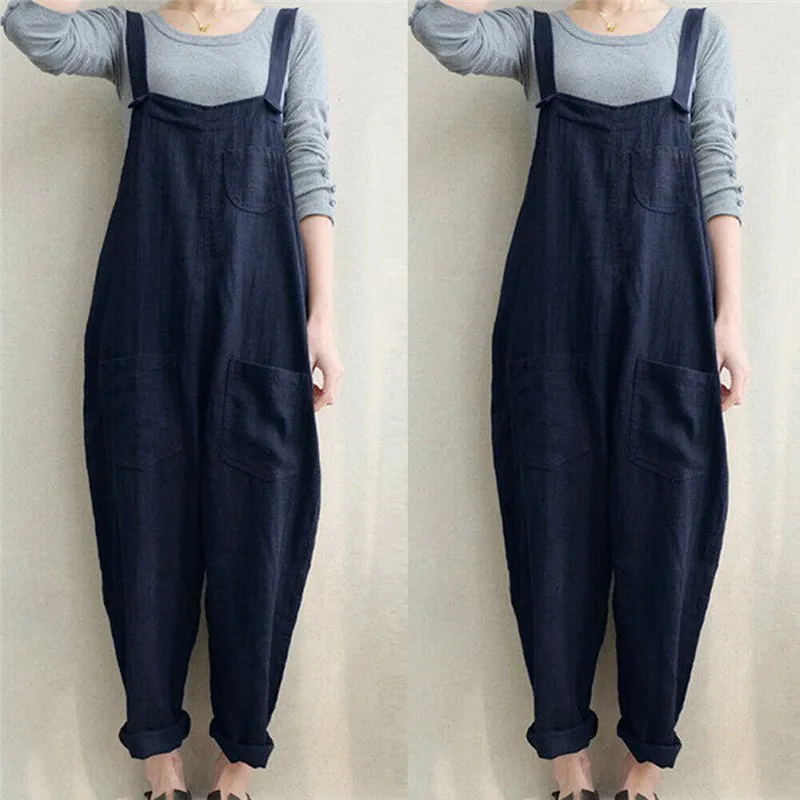 4XL נשים ללא שרוולים מכנסיים Rompers כותנה פשתן סרבל Loose הסטודנטיאלי סגנון מכנסיים מקרית כיס סרבל Playsuits