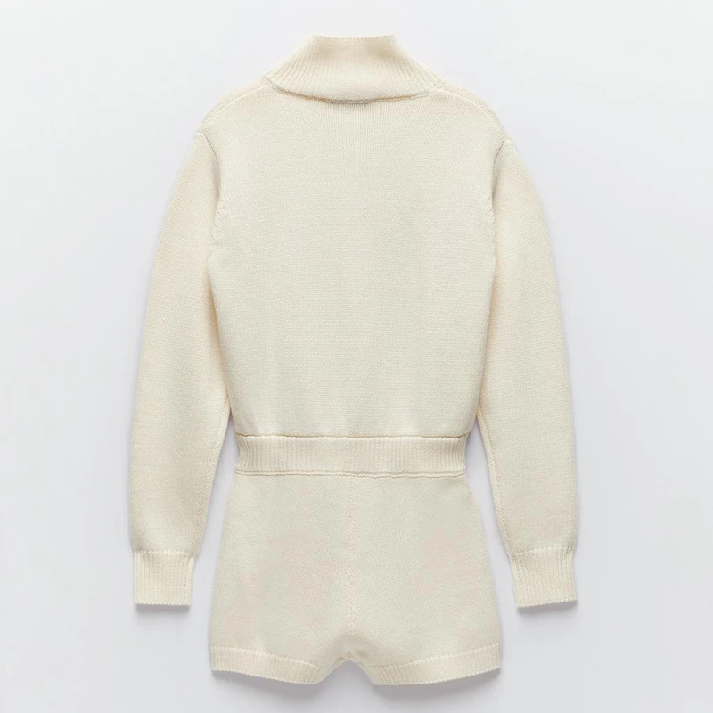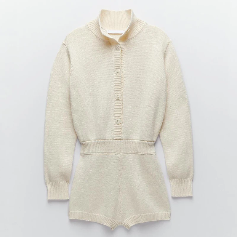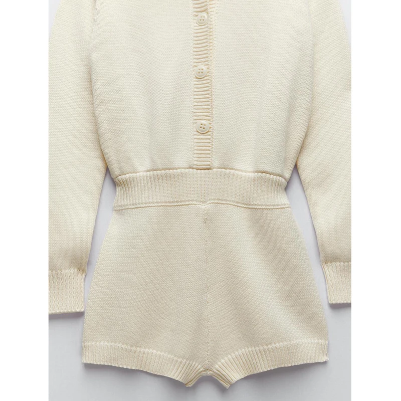 AGong Slim צווארון עומד סרבלי נשים אופנה מוצק סרוג סרבל נשים כפתורים אלגנטיים קצר סרבלי נקבה גבירותיי