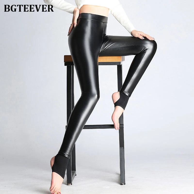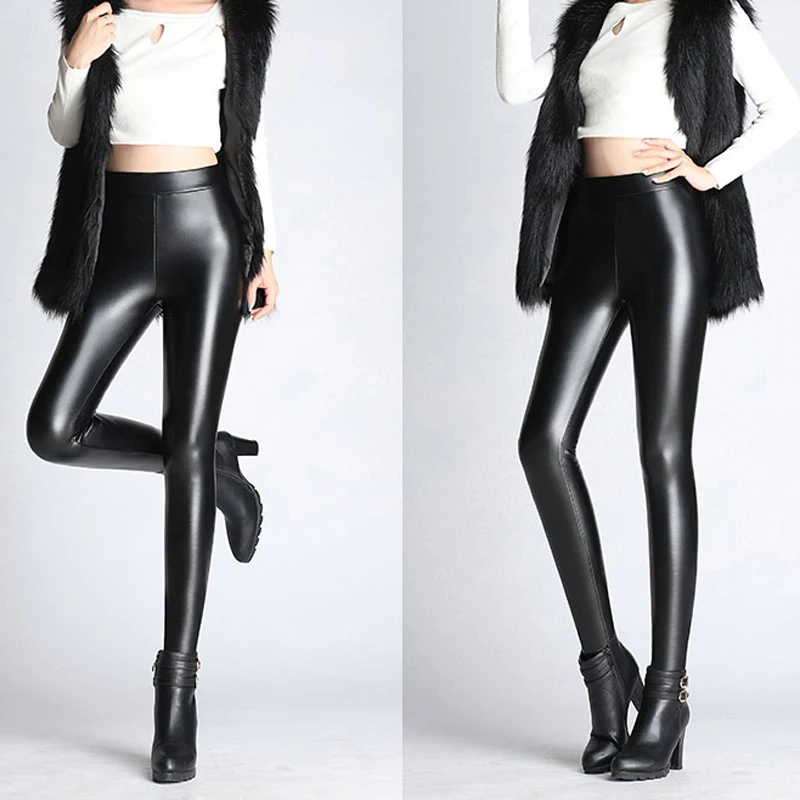 S-5XL גבוהה מותן פו עור 2020 אופנה סקסי דק שחור נשים חותלות נמתחו לדחוף את חותלות בתוספת גודל