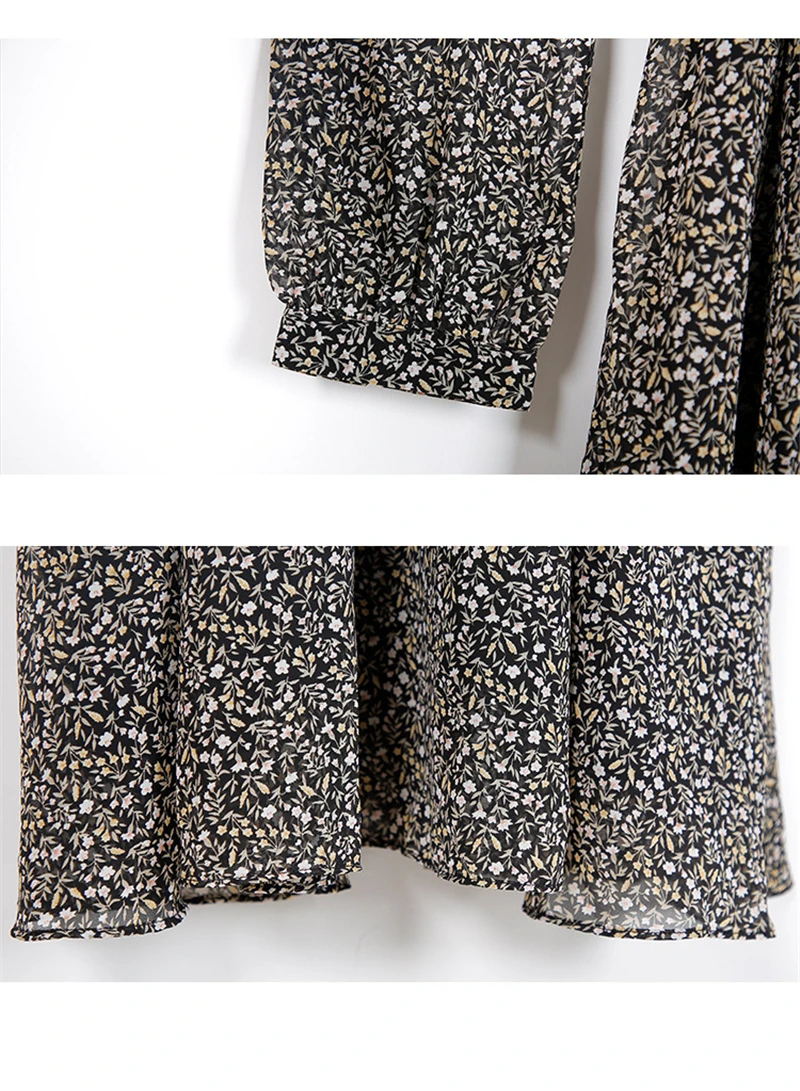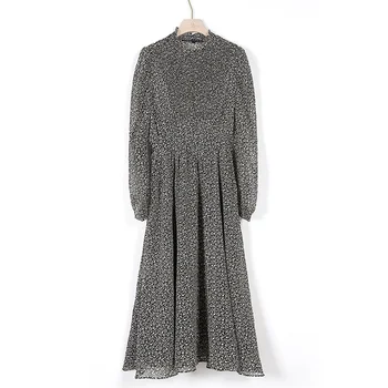 BGTEEVER בציר צווארון עומד Ruched שרוול אונליין שמלת נשים פרחוני הדפסת אלסטי מותניים נשי שמלת אביב Vestidos femme 202