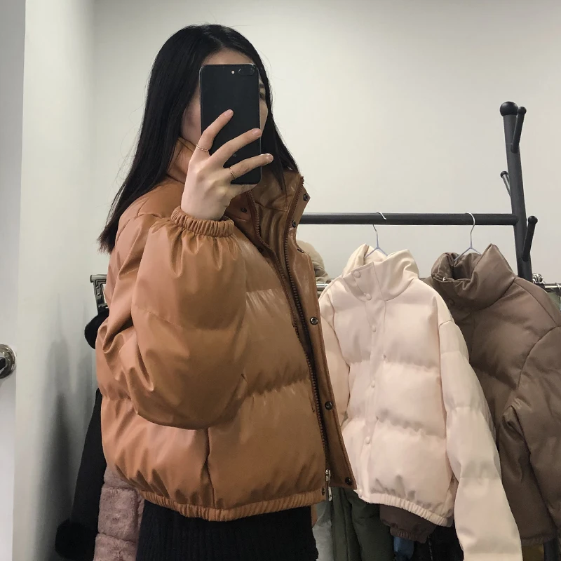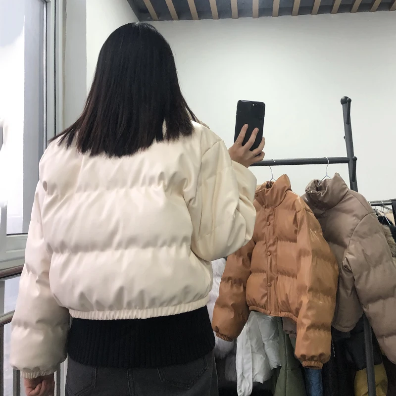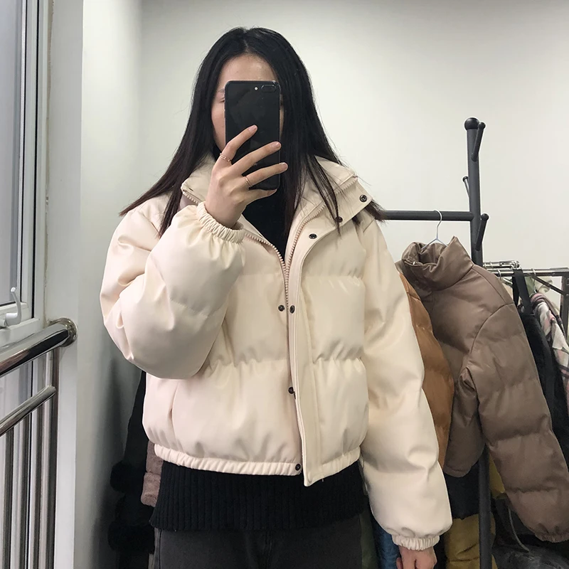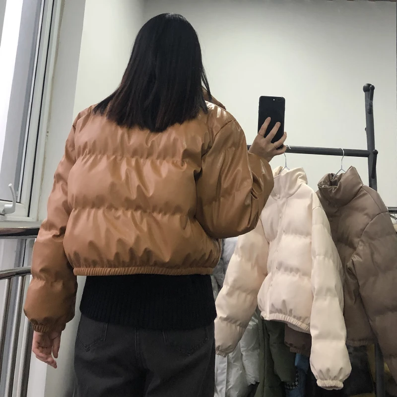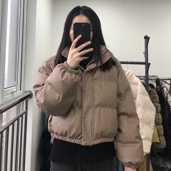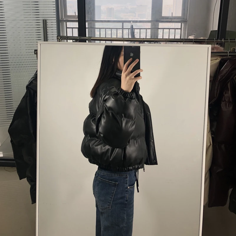 CP חורף עבה חם קצר מעיילי נשים אופנה שחור עור מפוצל מעילי נשים אלגנטי רוכסן כותנה מעילי נקבה גבירותיי