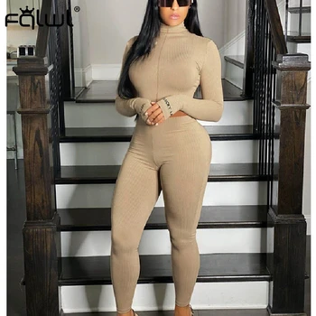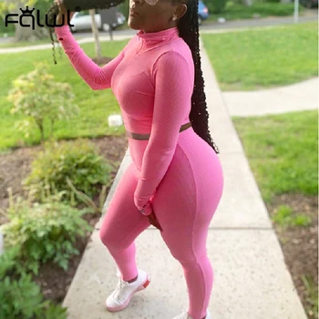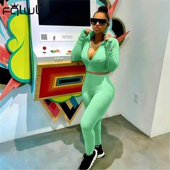 FQLWL מזל תווית 2 שתי חתיכה להגדיר נשים תלבושות Activewear כושר אלסטי יבול למעלה חותלות נשים התאמת סט אימונית נקבה
