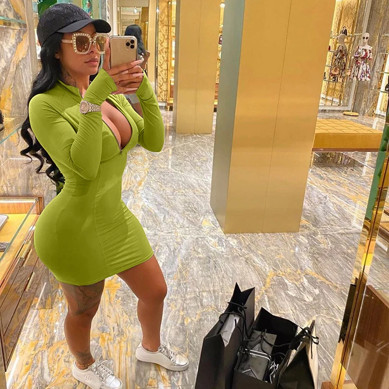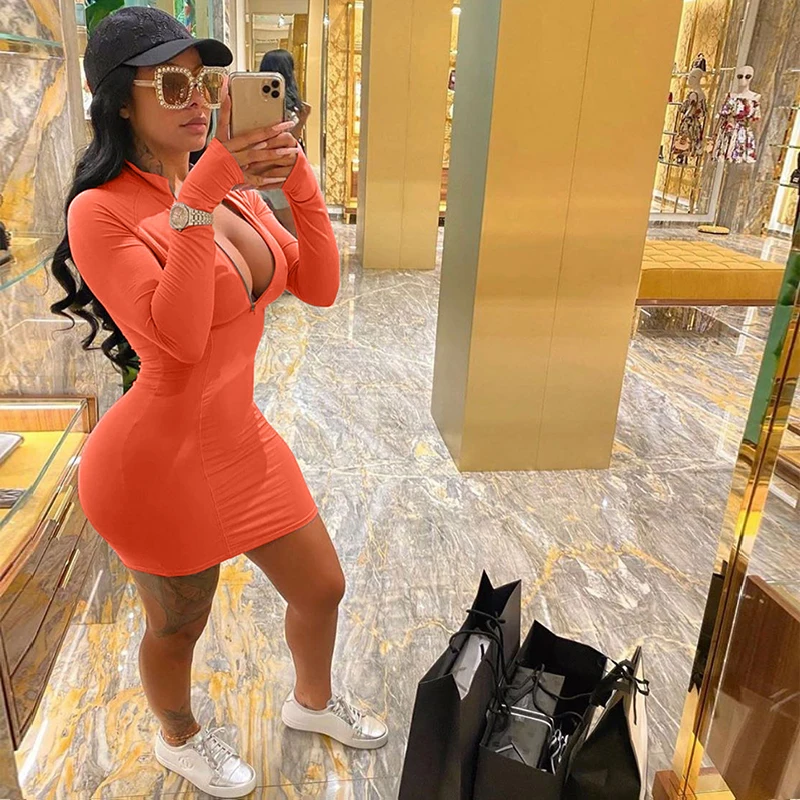 Hirigin סקסי בתוספת גודל Bodycon מיני שמלה ארוך שרוול סתיו לנשים אופנה גדול Vestidos לילה המפלגה מועדון שמלות