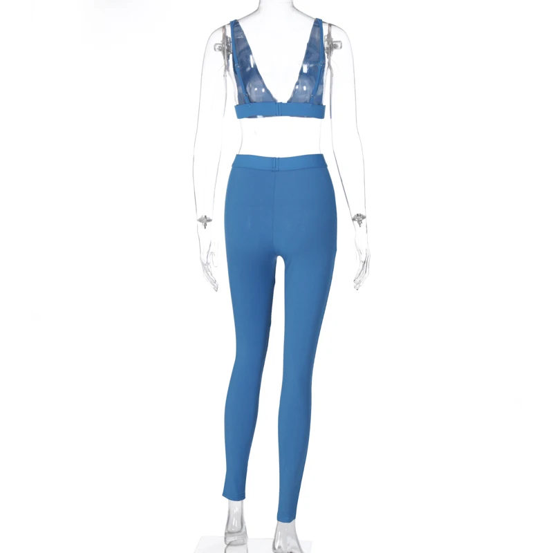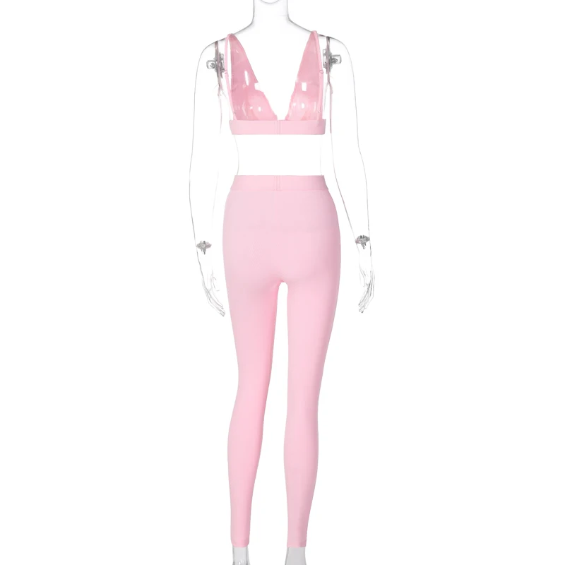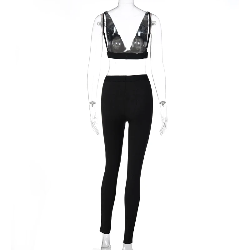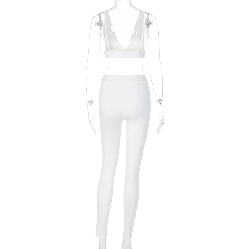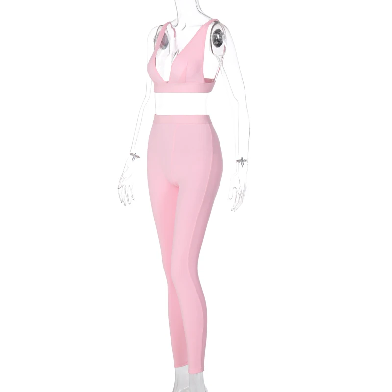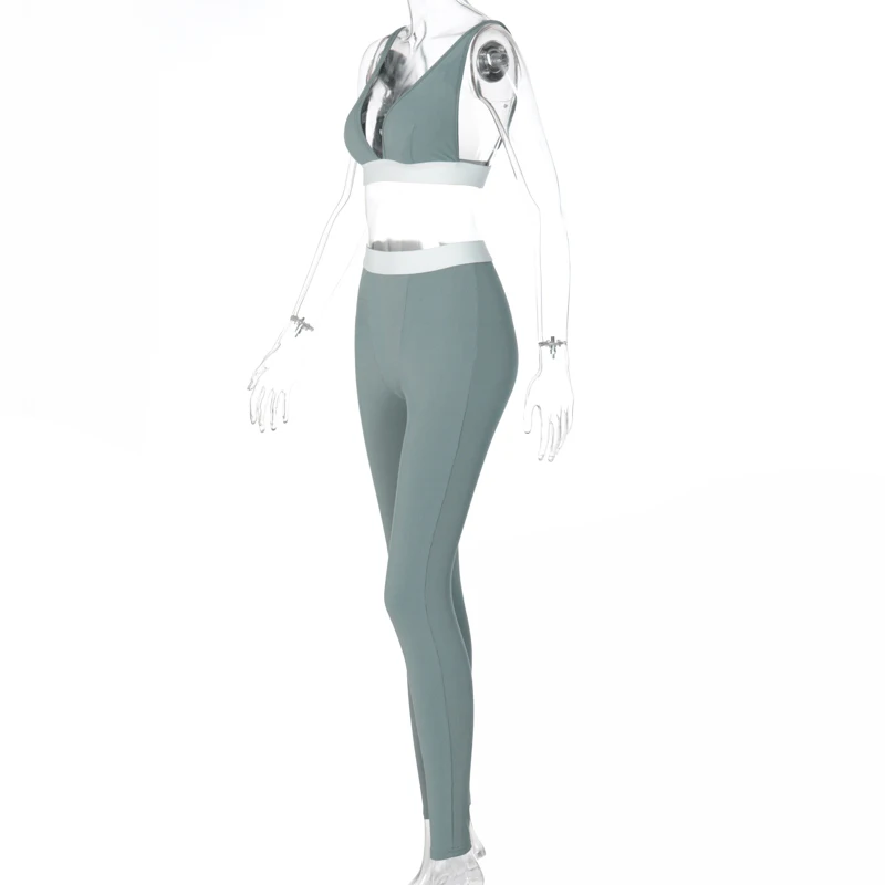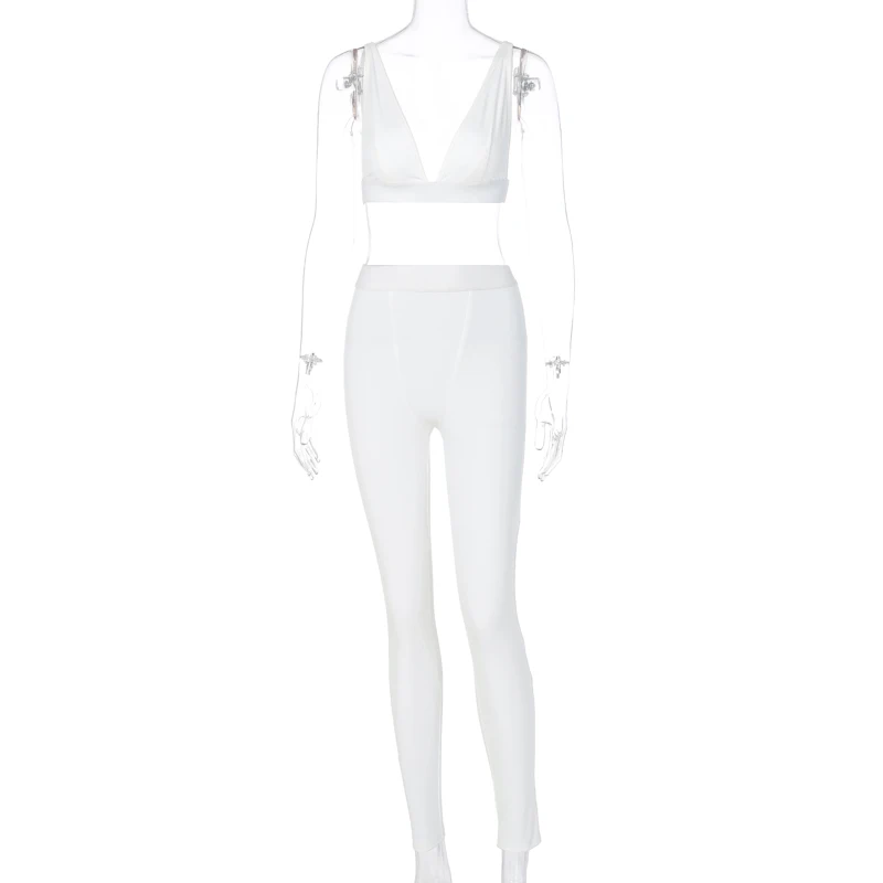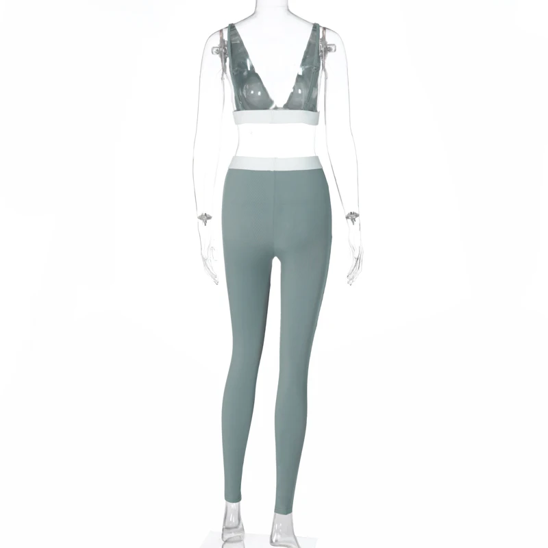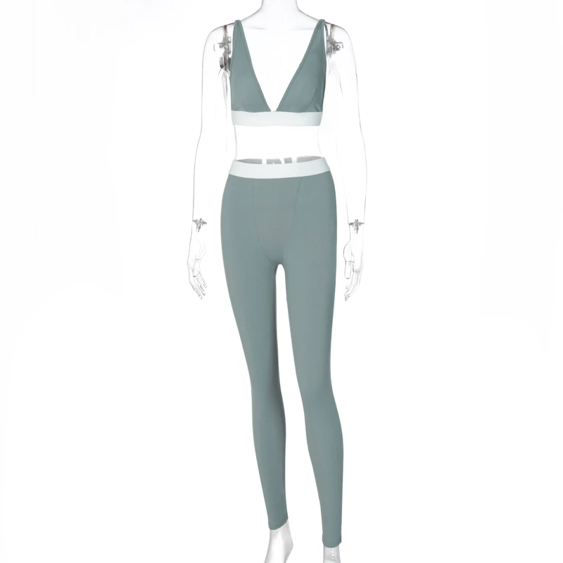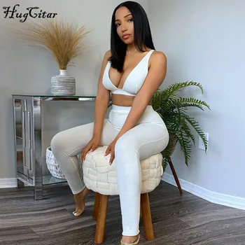 Hugcitar 2020 שרוולים V-צוואר יבול צמרות חותלות 2 חתיכות סט חורף נשים אופנה תלבושות Streetwear ספורט אימונית