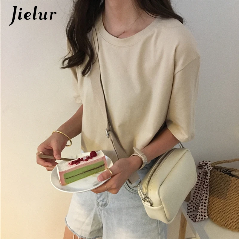 Jielur טי חולצה 15 צבע אחיד בסיסי חולצה נשים מקרית O-צוואר Harajuku קיץ למעלה קוריאני הברנש לבן חולצת טי S-XL