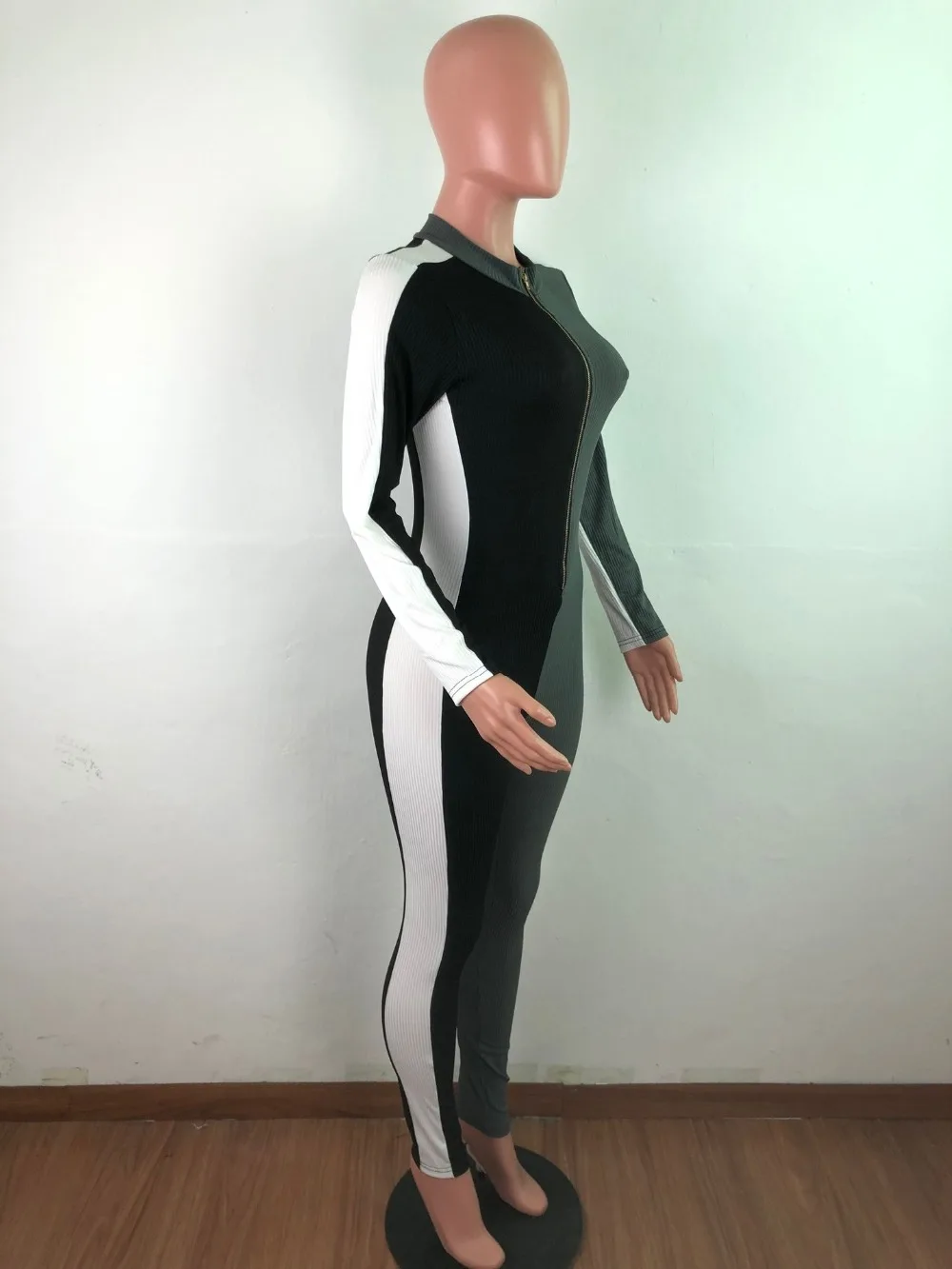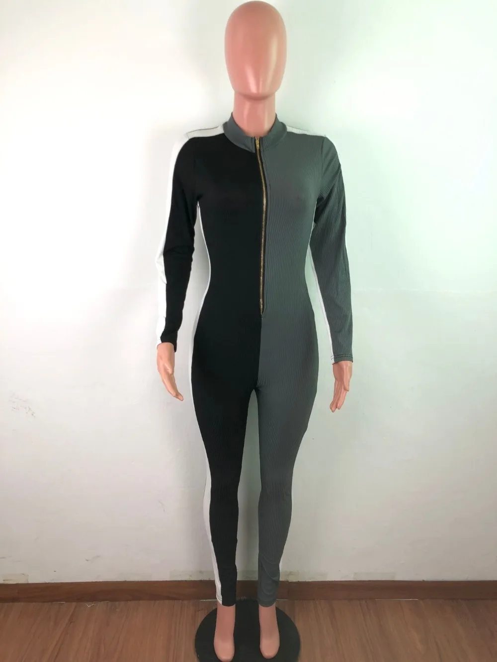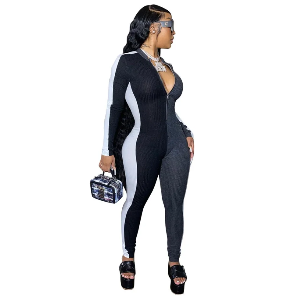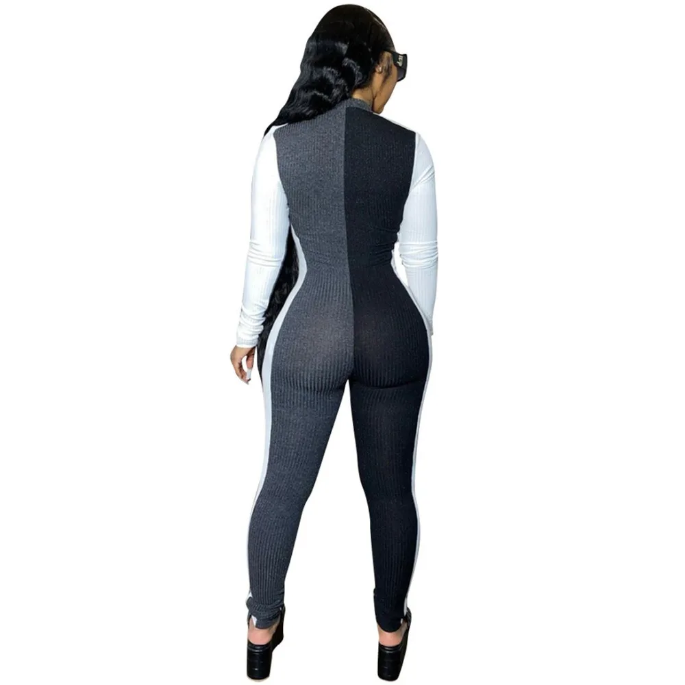 JRRY מזדמן נשים מצולע סרבל ארוך שרוול גולף רוכסנים גבוהה גמישות צלעות בגד גוף העלה קווים דפוס חיצוני ללבוש