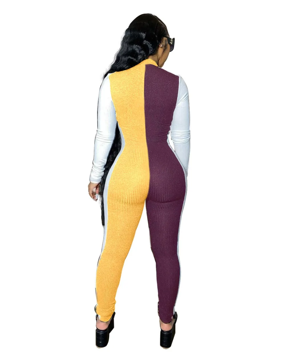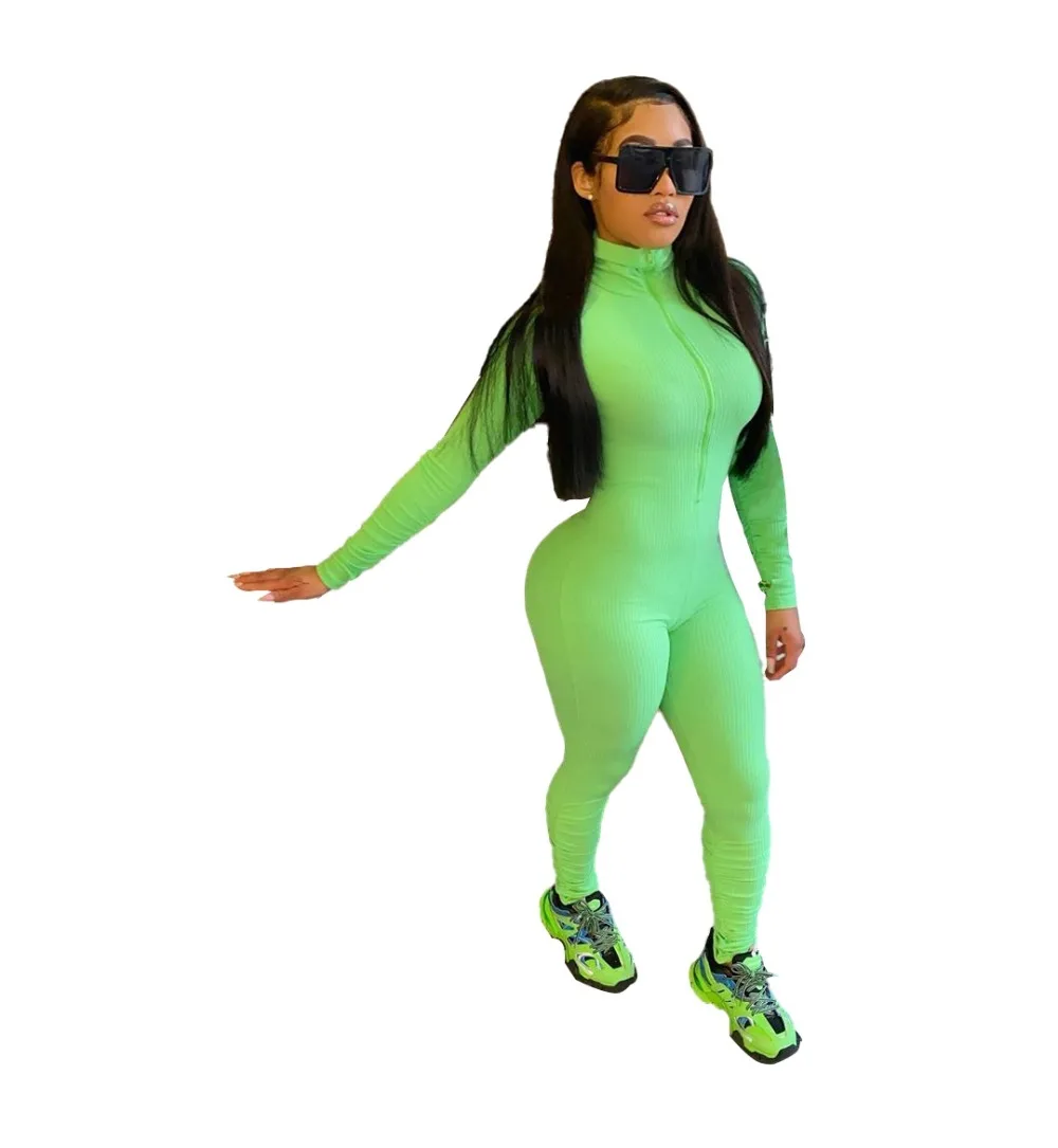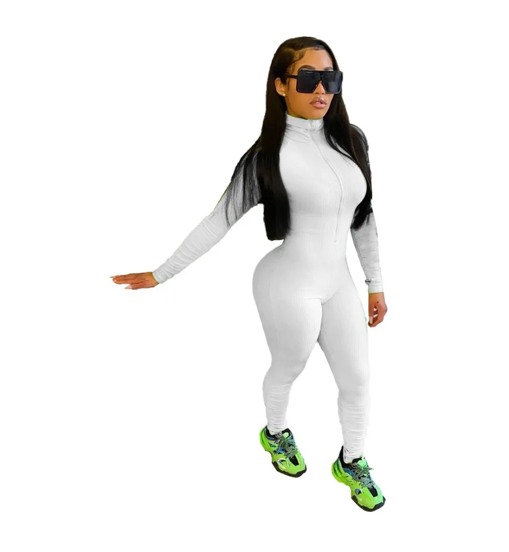 JRRY מזדמן נשים מצולע סרבל ארוך שרוול גולף רוכסנים גבוהה גמישות צלעות בגד גוף העלה קווים דפוס חיצוני ללבוש
