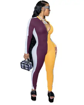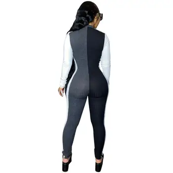 JRRY נשים מצולע סרבלי ארוך שרוול גולף גבוהה גמישות רוכסנים צלעות בגד גוף הדפסת העלה קווים דפוס חיצוני ללבוש