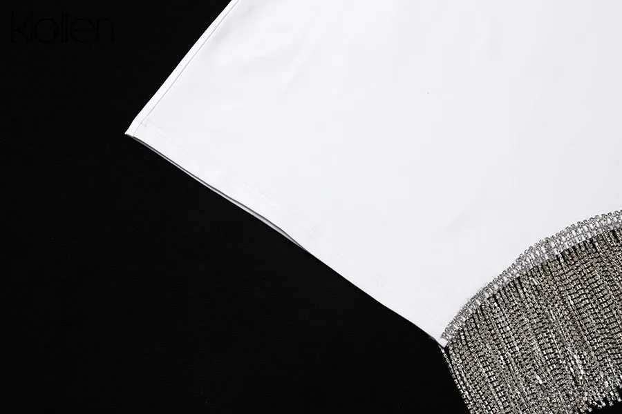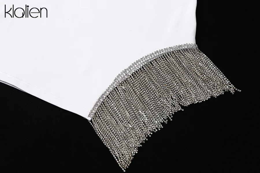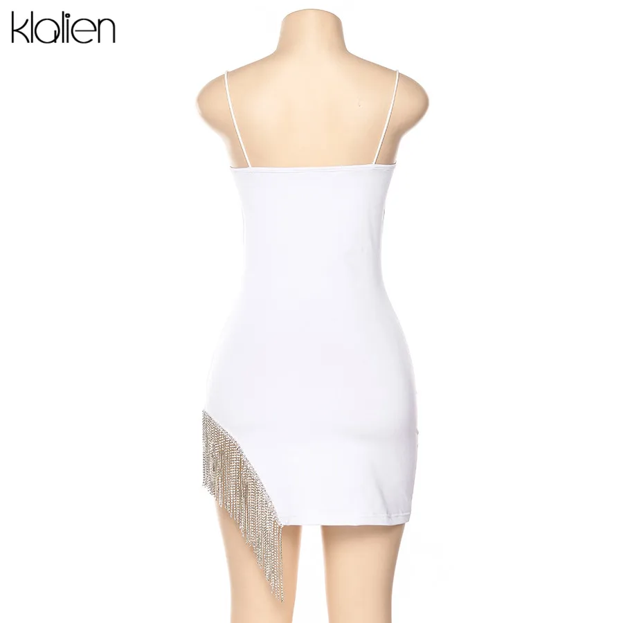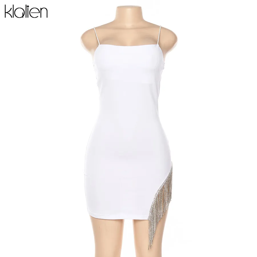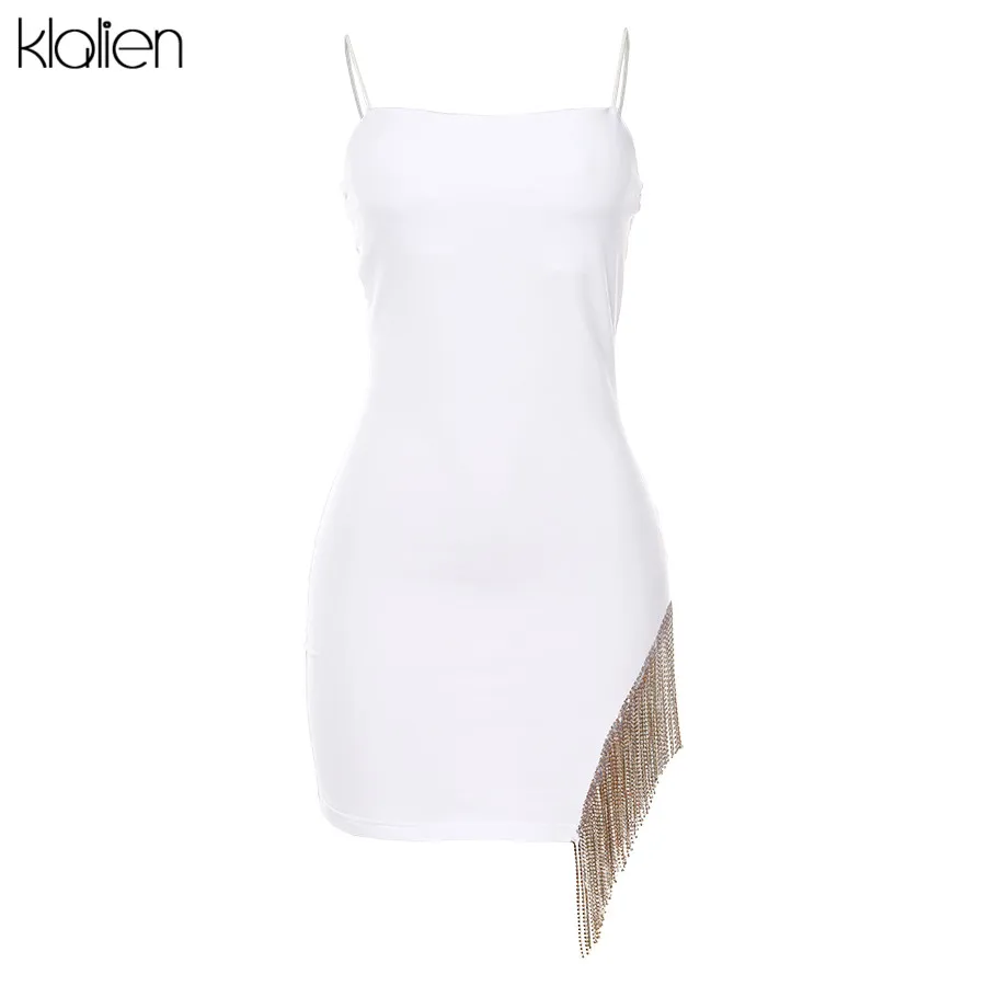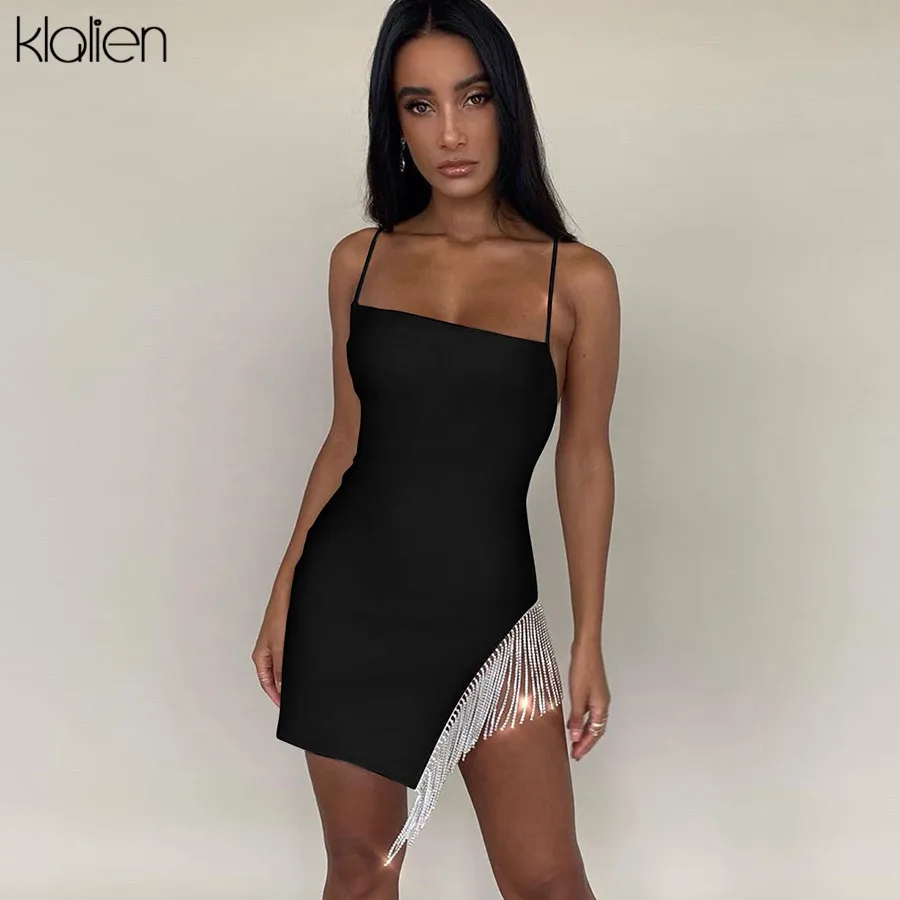 KLALIEN ציצית סקסי מוצק סטרפלס ללא שרוולים טלאים Bodycon שמלה חדש קיץ אופנה אלגנטי בכיר מועדון המפלגה מיני שמלה