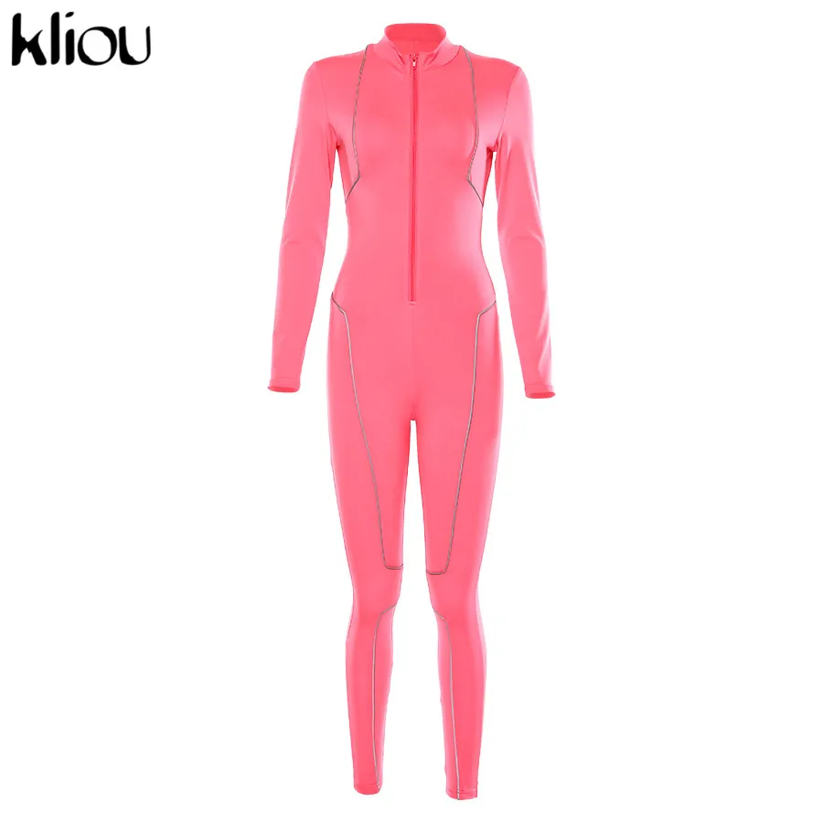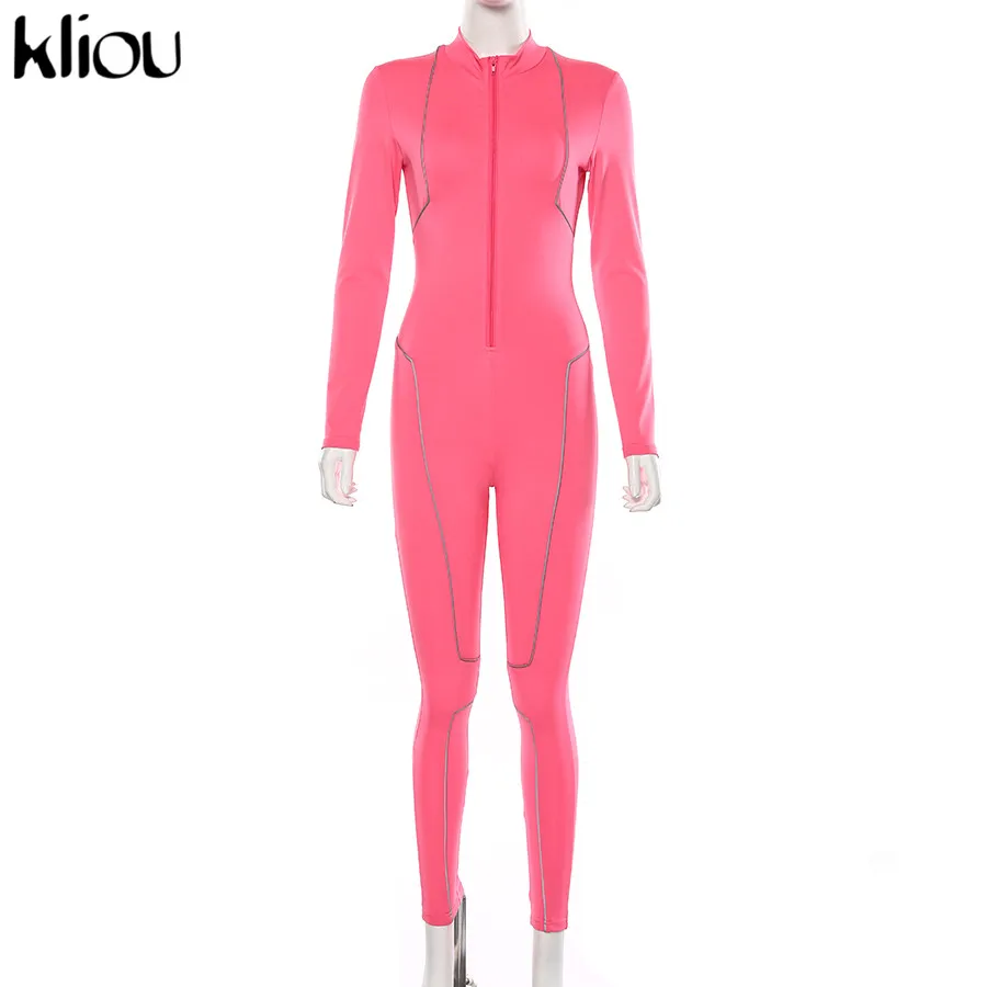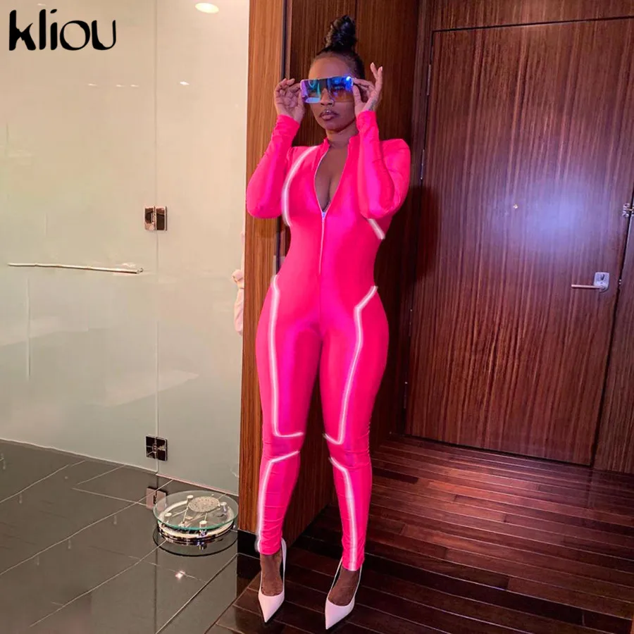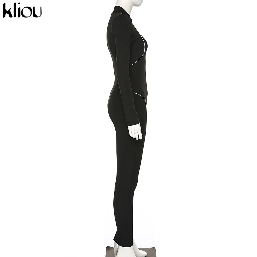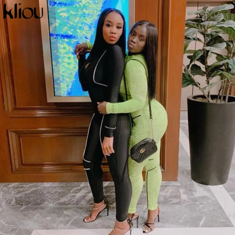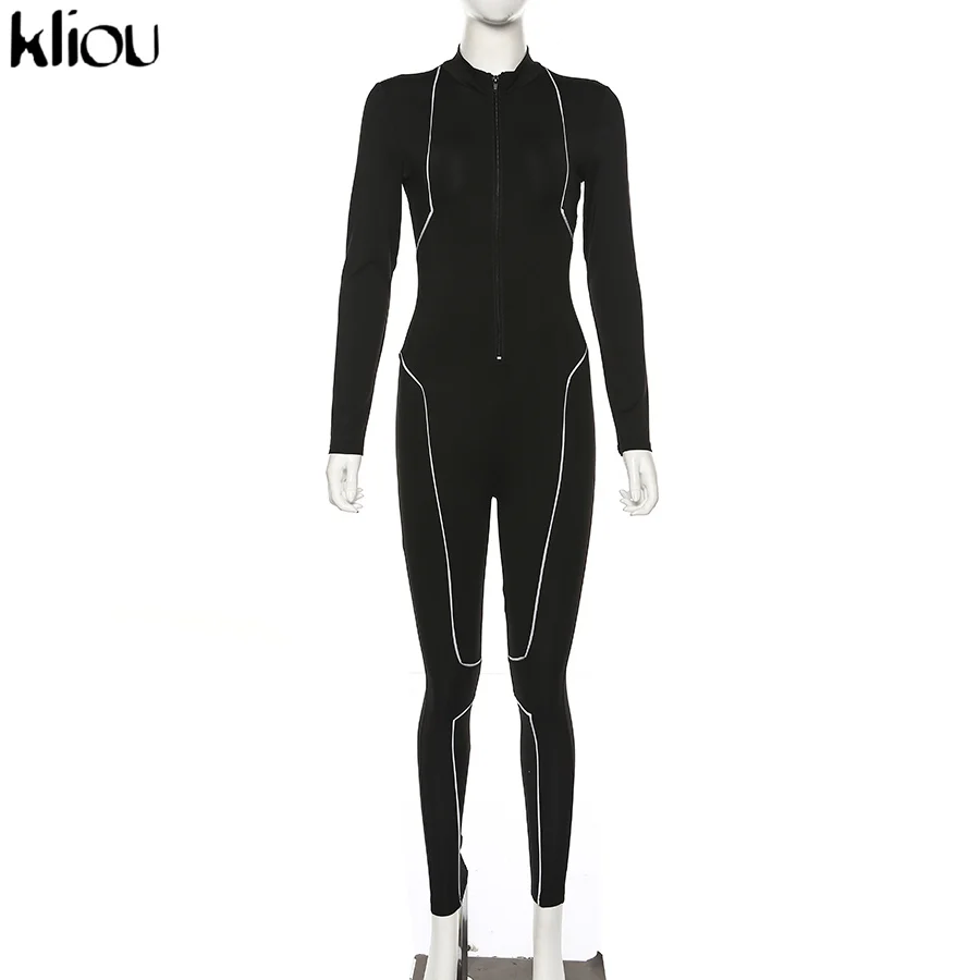 Kliou נשים סקיני ארוך rompers סרבל רוכסן גולף טוב אלסטי בגד גוף 2019 סתיו חדש אופנה טלאי רעיוני