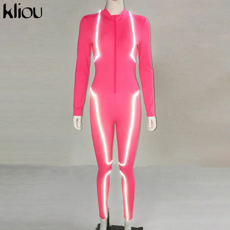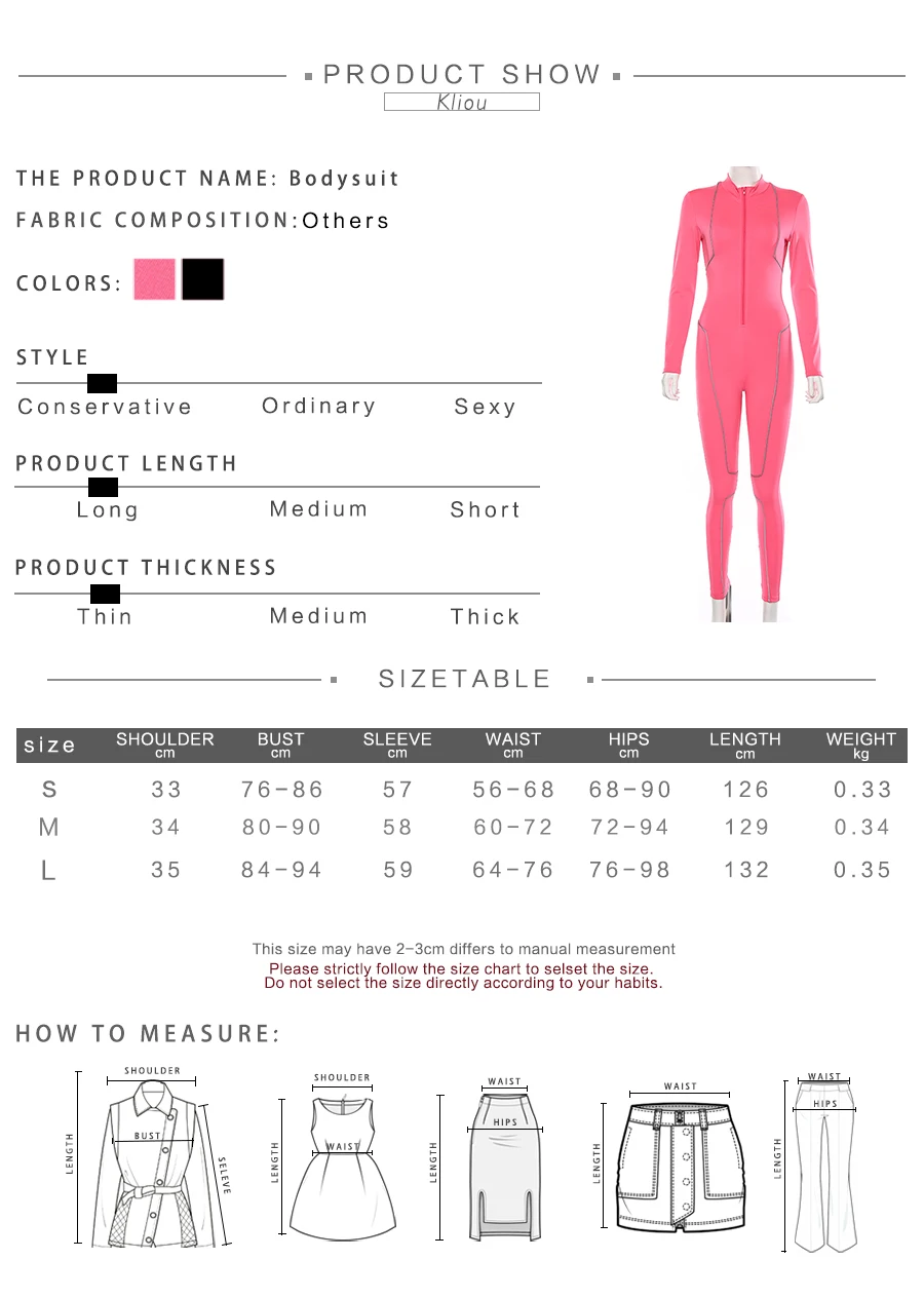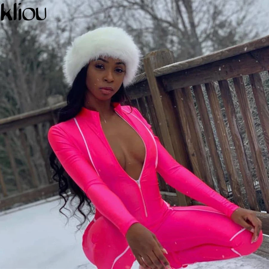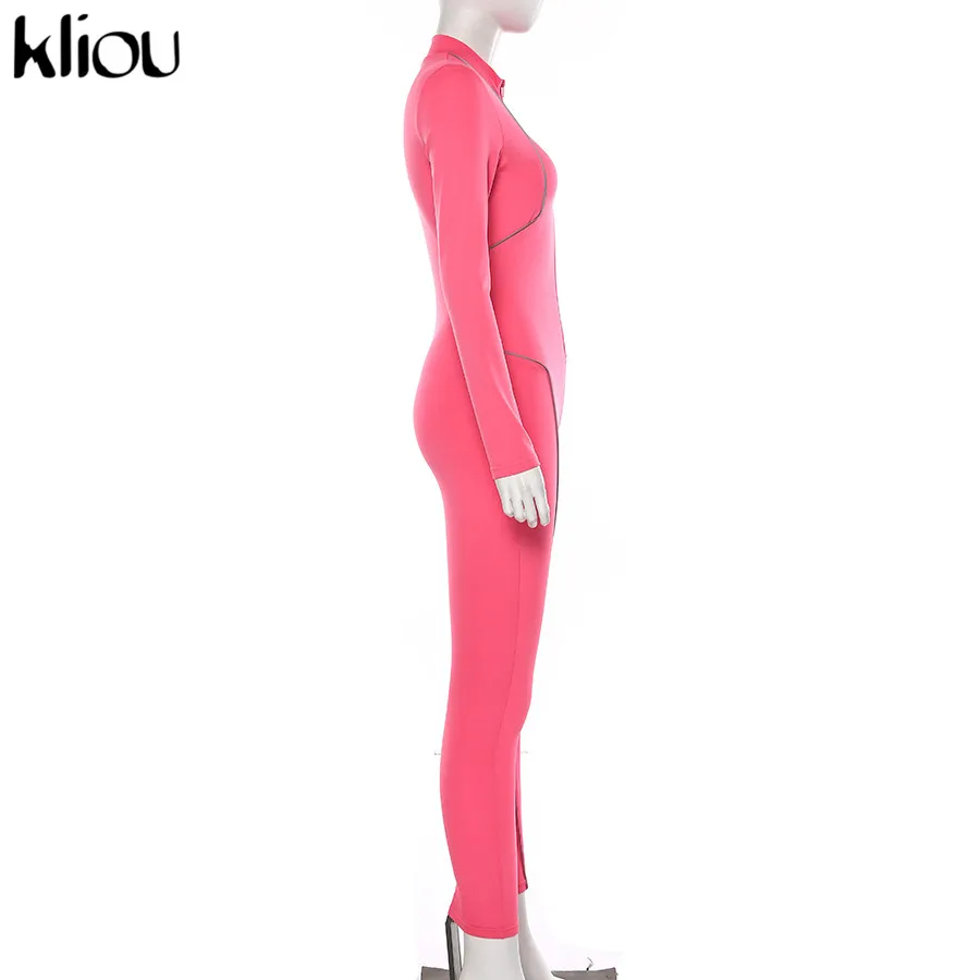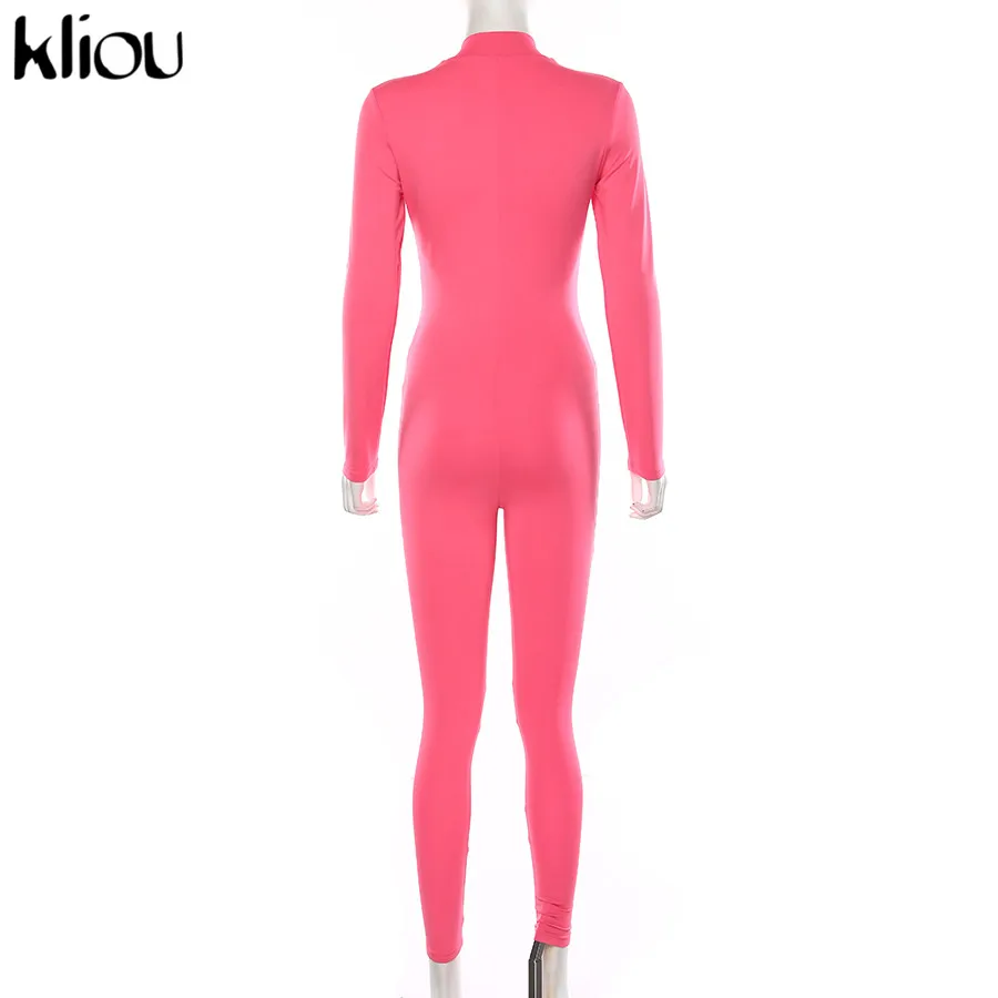 Kliou נשים סקיני ארוך rompers סרבל רוכסן גולף טוב אלסטי בגד גוף 2019 סתיו חדש אופנה טלאי רעיוני
