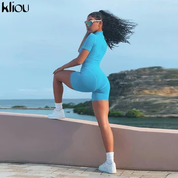 Kliou נשים סקיני בגד גוף קצר שרוול playsuit רעיוני מכתב הדפסת rompers 2019 גולף נשי אופנה מזדמן בגד גוף