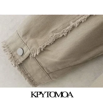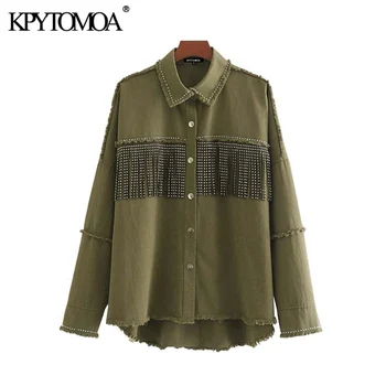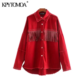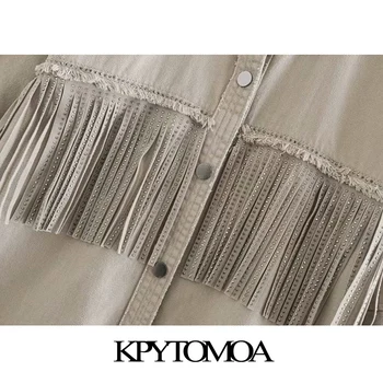 KPYTOMOA נשים 2020 אופנה גדול בלוי עם פרינג 'ינס Vintage ארוך שרוול ציצית נשי הלבשה עליונה שיק חולצות