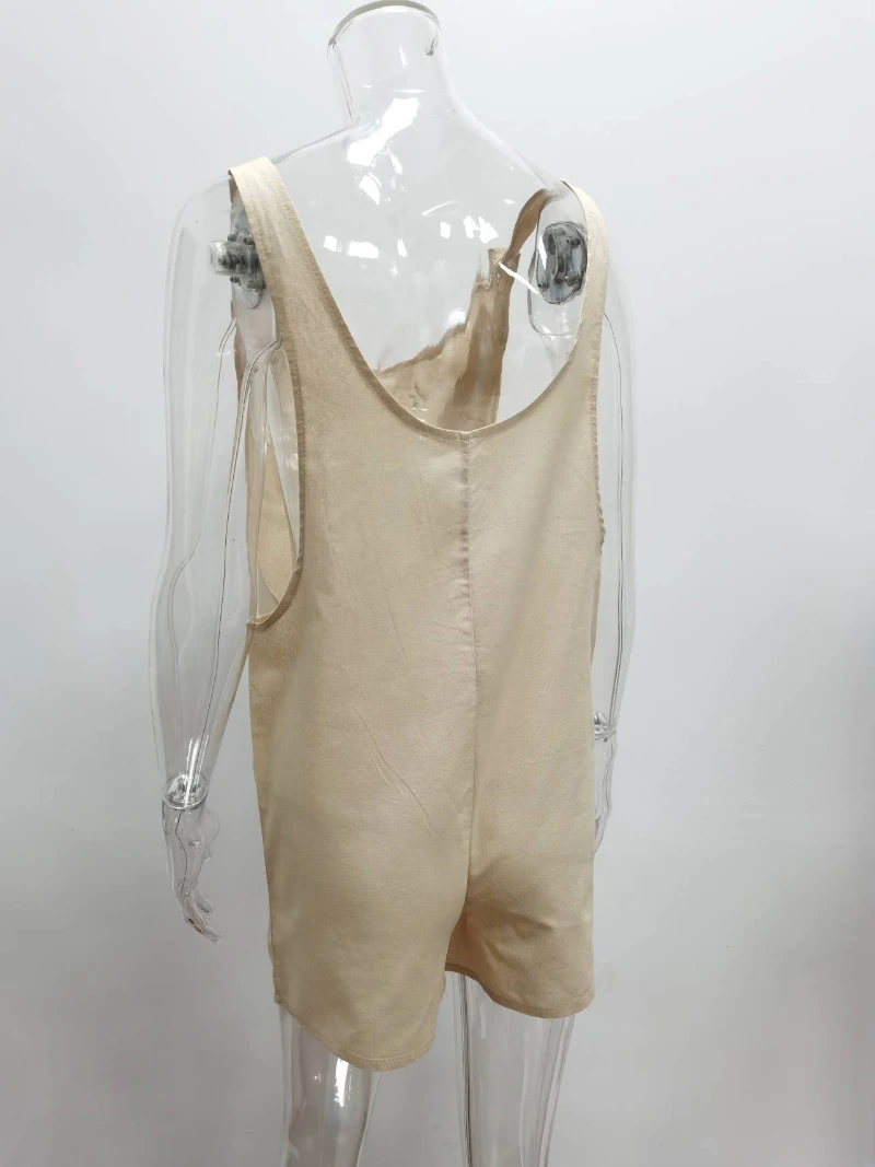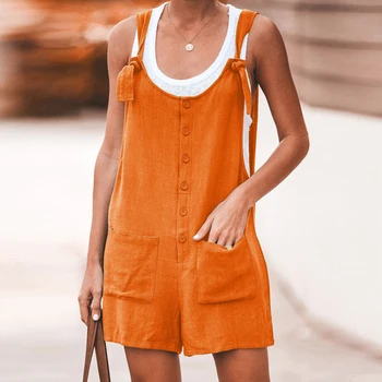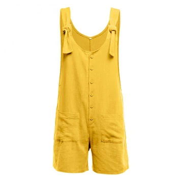 2020 חדש קיץ כותנה פשתן סרבל נשים של Loose אופנה סרבל תחרה כיס תחרה עד ביב מכנסיים תלמיד U-צוואר סרבל