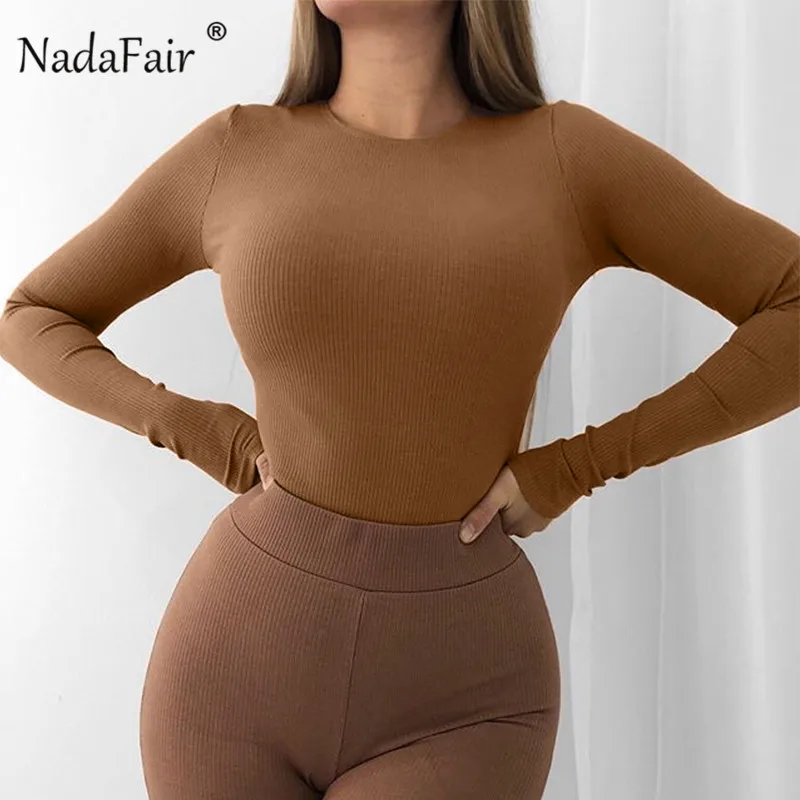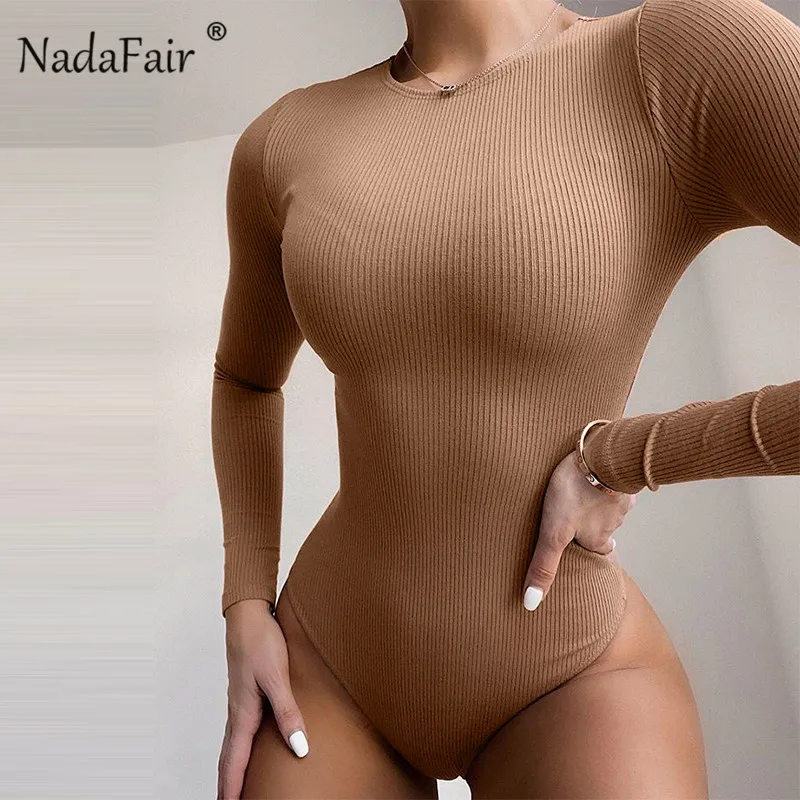 Nadafair Winterknitting בגד גוף לנשים ארוך שרוול בגד גוף נשים מצולע סתיו Bodycon Bodysuits גוף נשי 2020 Romper