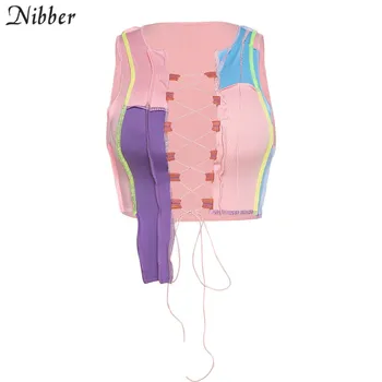 Nibber סקסי הולו מתוך חולצה נשים פאנק סגנון מצולעים סריגה יבול חולצות מועדון המפלגה ללבוש צבעוני גופייה תחבושת אפוד נקבה