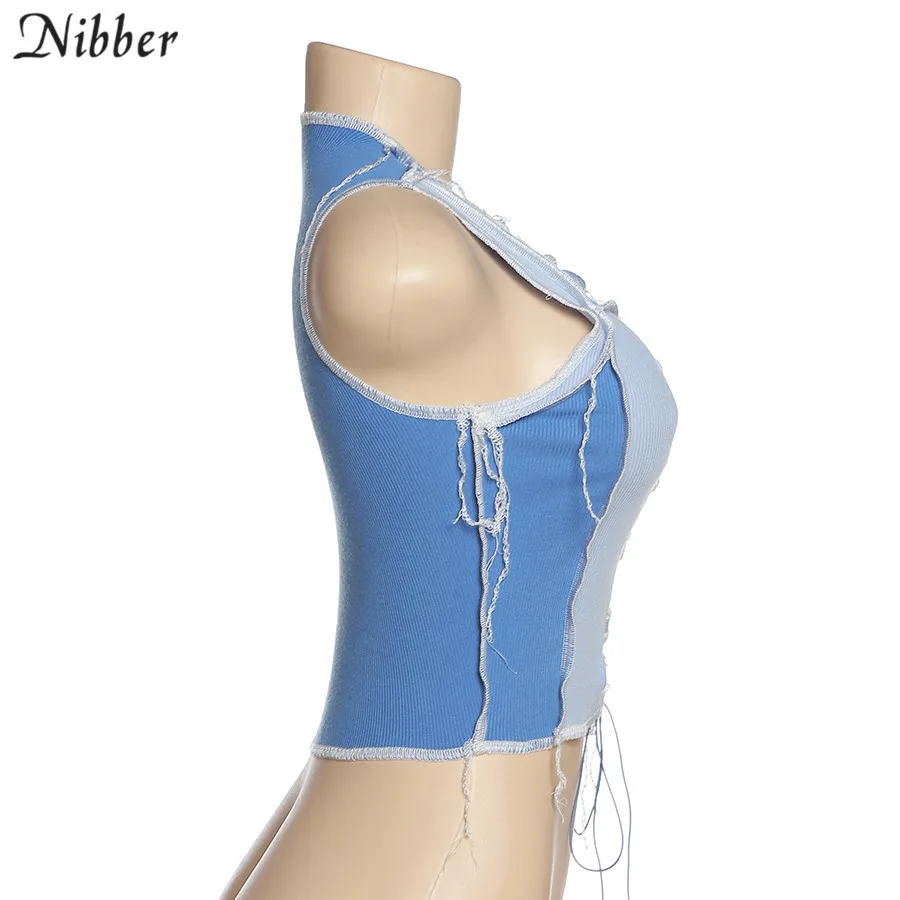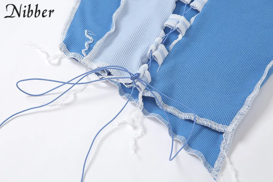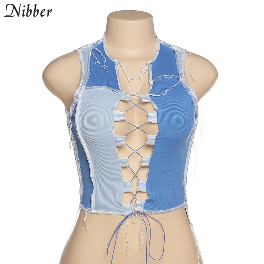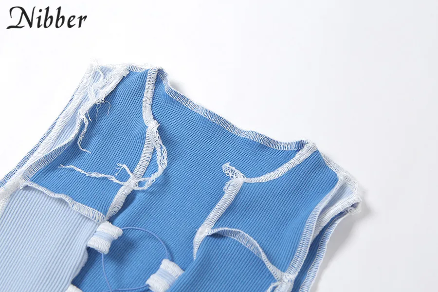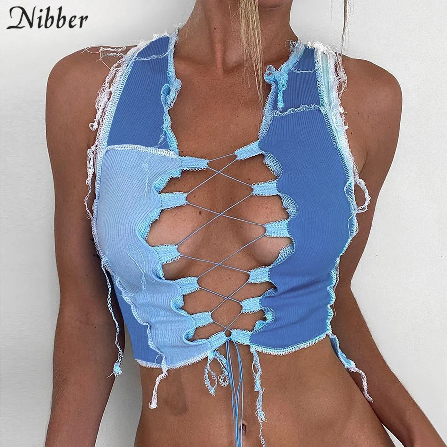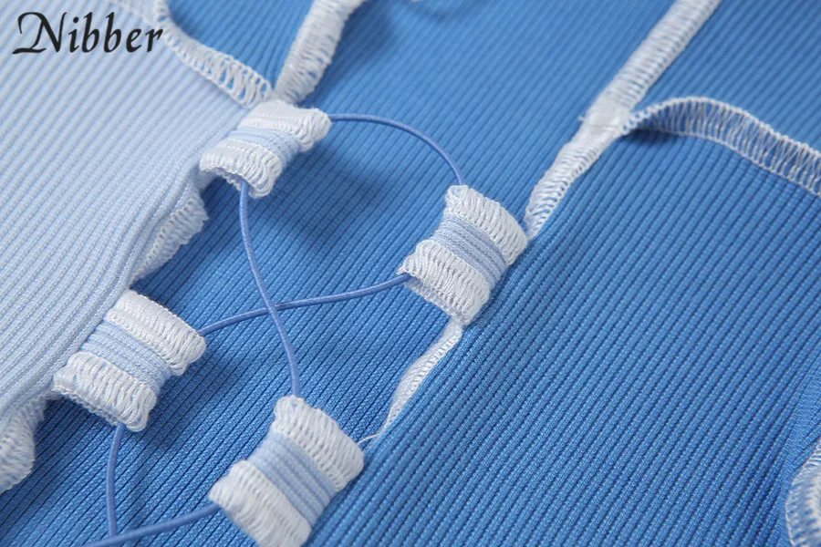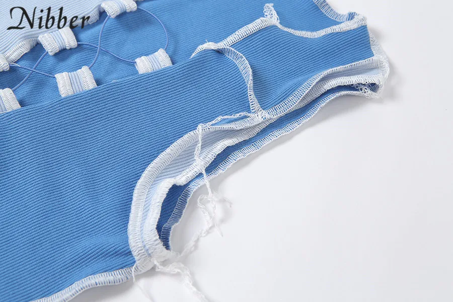 Nibber סקסי תחבושת לגזור חור יבול צמרות נשים חולצה 2020 קיץ שיק פאנק סגנון מצולעים סריגה מועדון ללבוש mujer