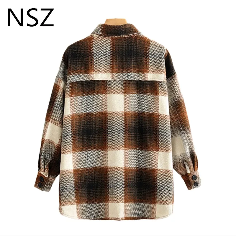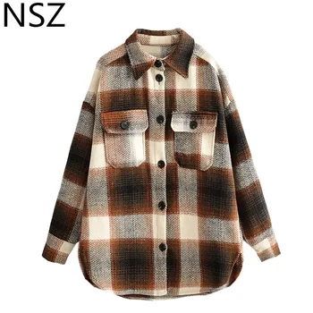 NSZ נשים צמר תערובות החולצה משובצת גדולה מעיל בדק צמר Overshirt מעיל גבירותיי גודל גדול הלבשה עליונה