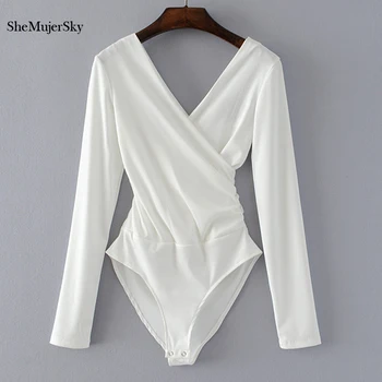 SheMujerSky ארוך שרוול בגד גוף נשים ללא משענת סרבלי שחור לבן גוף femme monos cortos דה mujer 2017