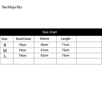 | גודל | חזה | שרוול | אורך | |||