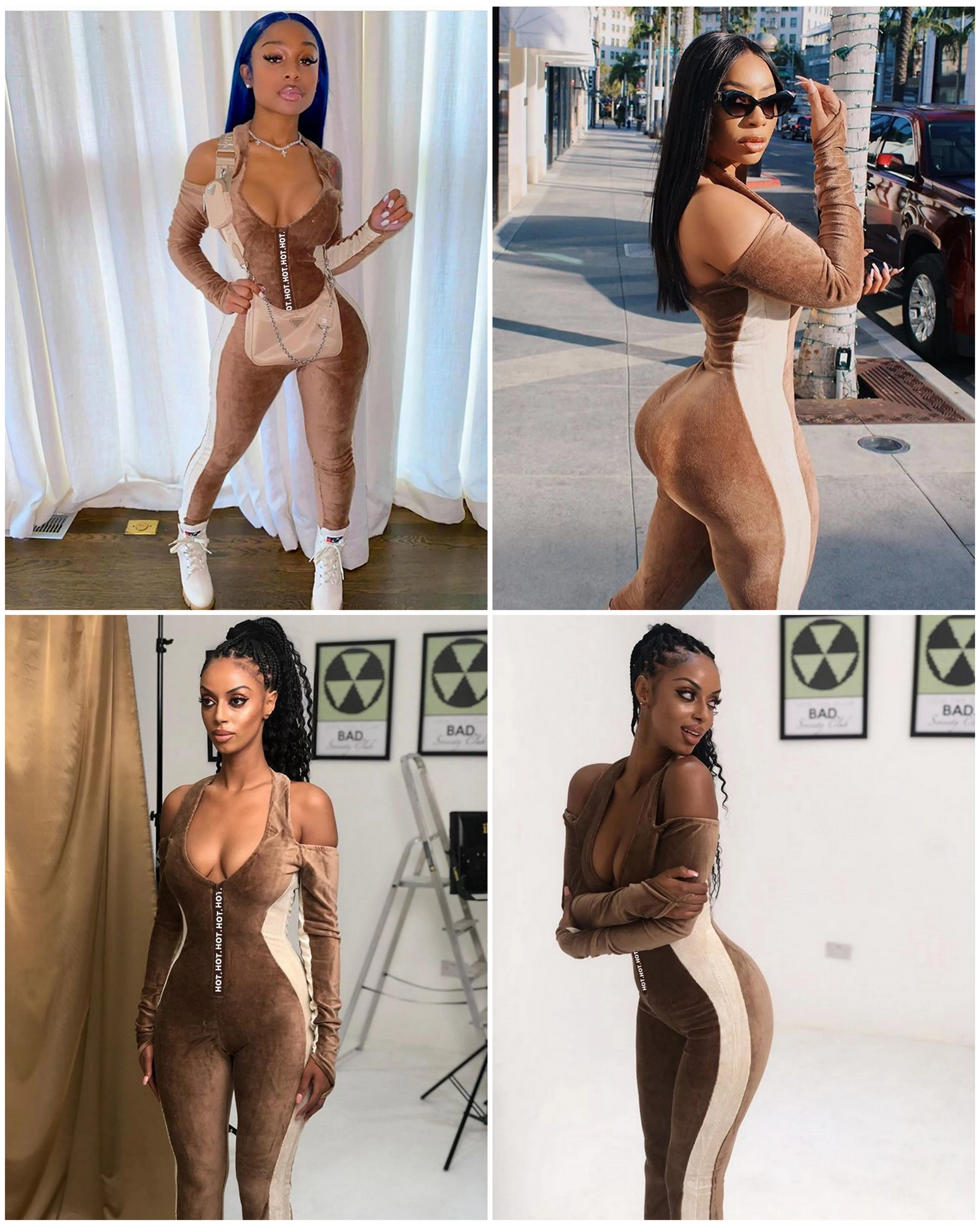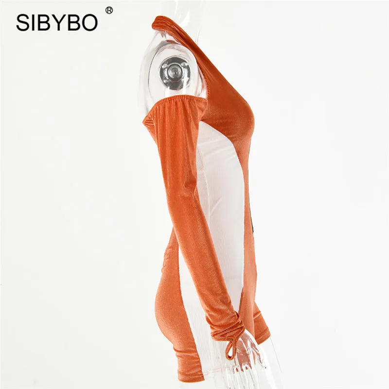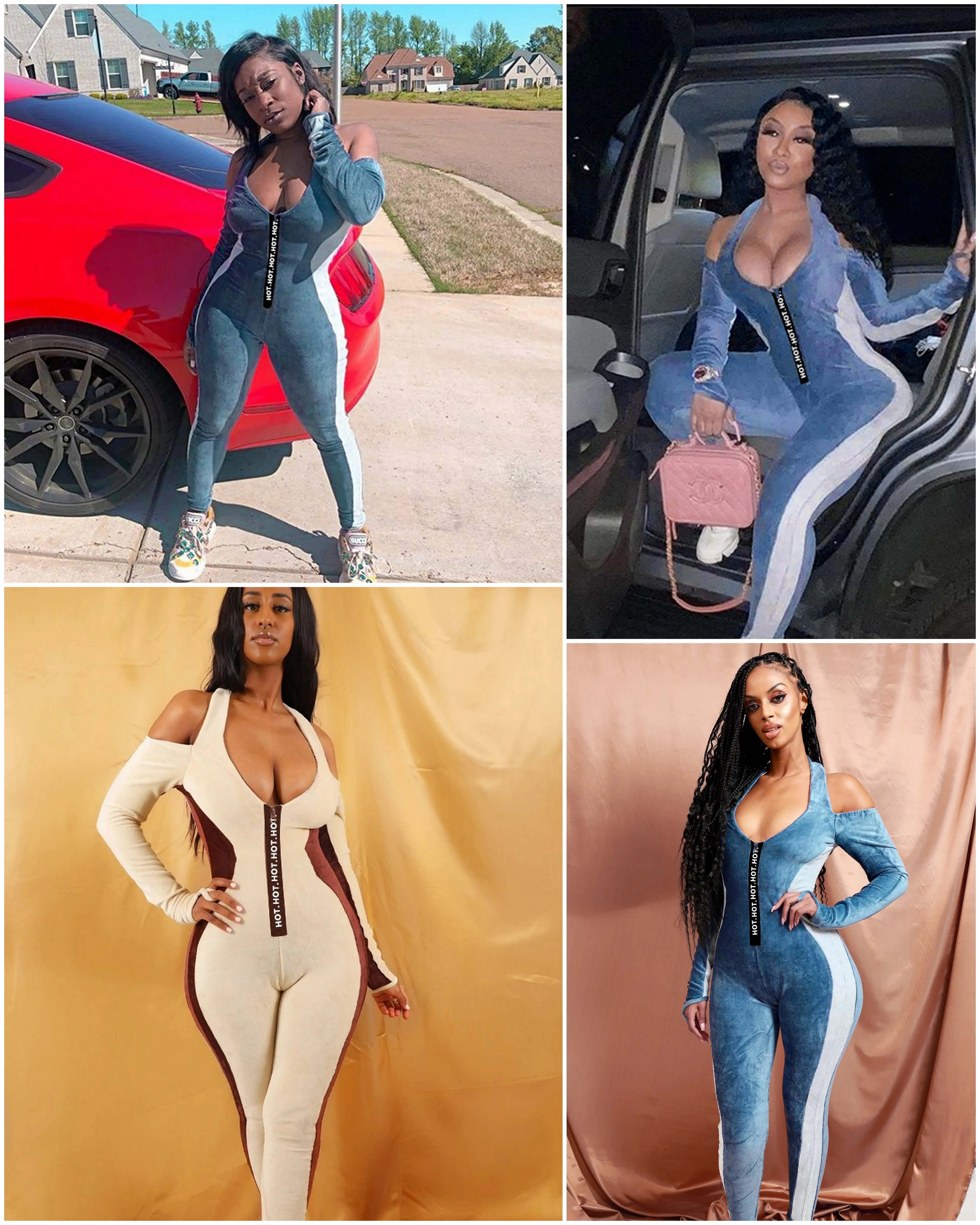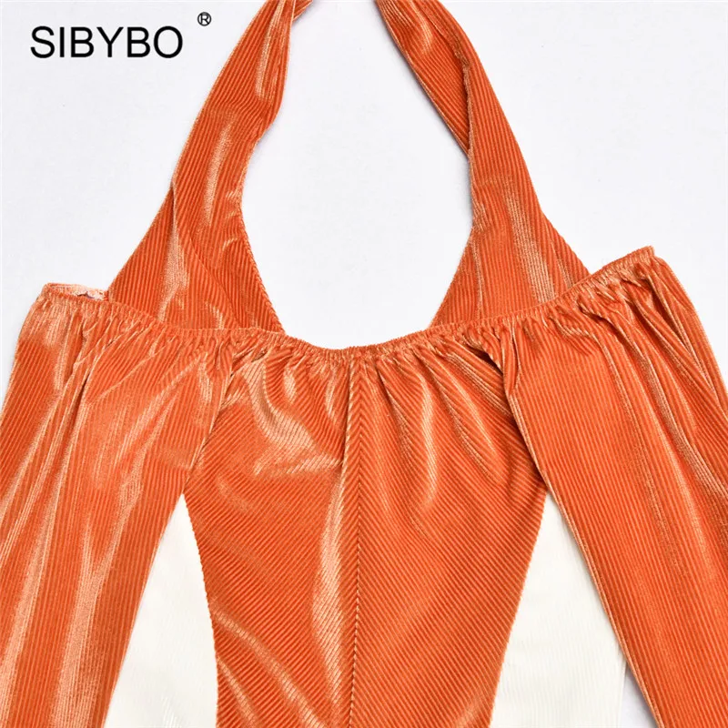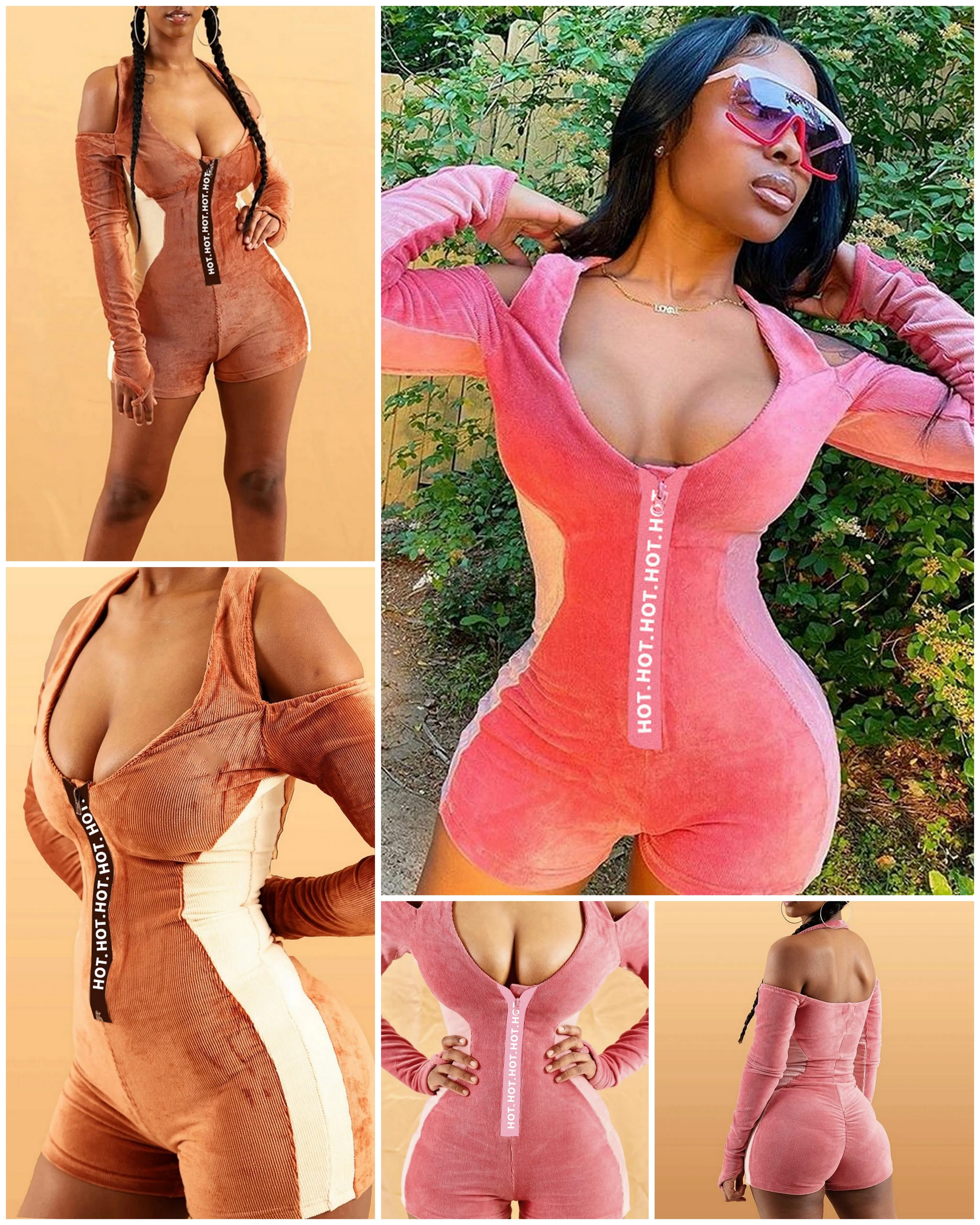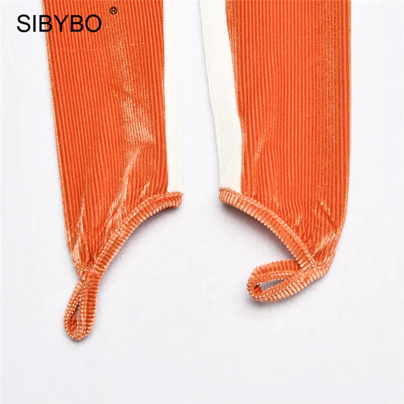 טיטל:SIBYBO קטיפה הלטר ללא משענת סקסית נשים Romper סרבלי סתיו טלאים Bodycon Playsuits חם רוכסן ספורטיבי כושר סרבל