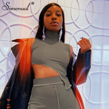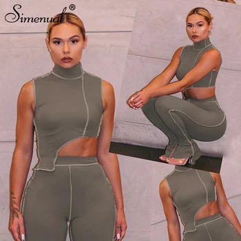 Simenual מקרית ספורטיבי פעיל ללבוש התאמה סט נשים שרוולים אימון Bodycon 2 חתיכה תלבושות סקיני יבול למעלה ומכנסיים סטים