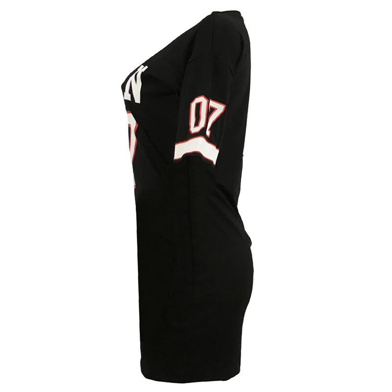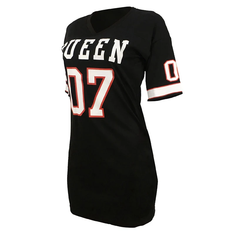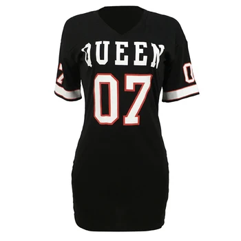 חדש קיץ נשים אופנה היפ הופ סגנון מלכת מכתב מודפס קצר שרוול Loose V צוואר Loose סקסי מיני שמלה