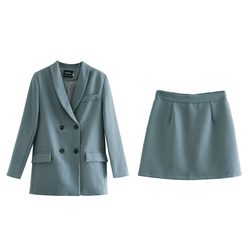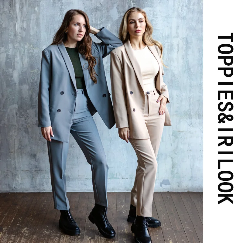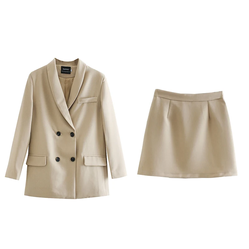 Toppies נשים בלייזר שתי חתיכה חליפת סט טור כפתורים כפול מעיל בליזר 2020 סתיו גבירותיי חליפה רשמית