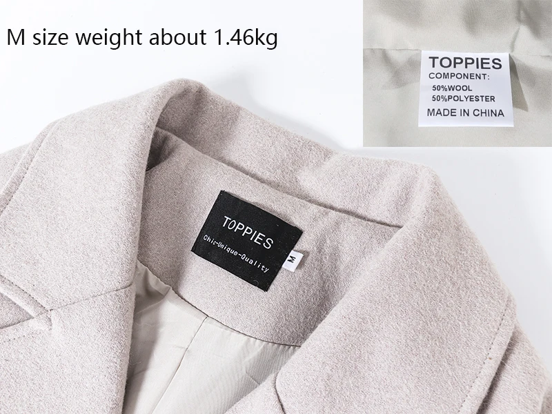 Toppies 2020 צמר תערובת מעיל נשים ארוך מעיל מעיל 50% צמר קוריאני גבירותיי להאריך ימים יותר מכוסה כפתור