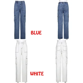 קוריאני אופנה אישה ג 'ינס רופף מזדמן ישר רגל Highwaist ג' ינס נקבה Streetwear אביב ובסתיו מכנסיים