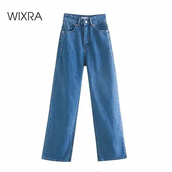 Wixra נשים ג 'ינס מכנסיים מזדמן מכנסי כותנה רחבה רגל ג' ינס מכנסיים סתיו האביב גבוה מותן ארוך מכנסיים