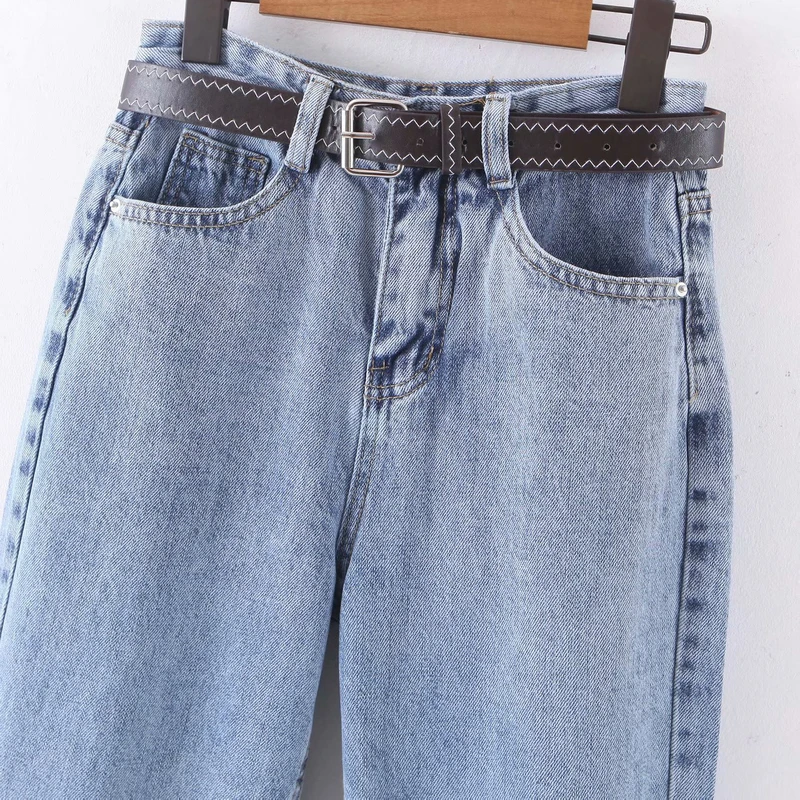 Wixra נשים Demin מכנסיים עם Sashes Streetwear מקרית גבוהה מותן רופף כפתורי כיסים Femme אביב סתיו
