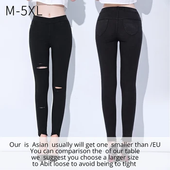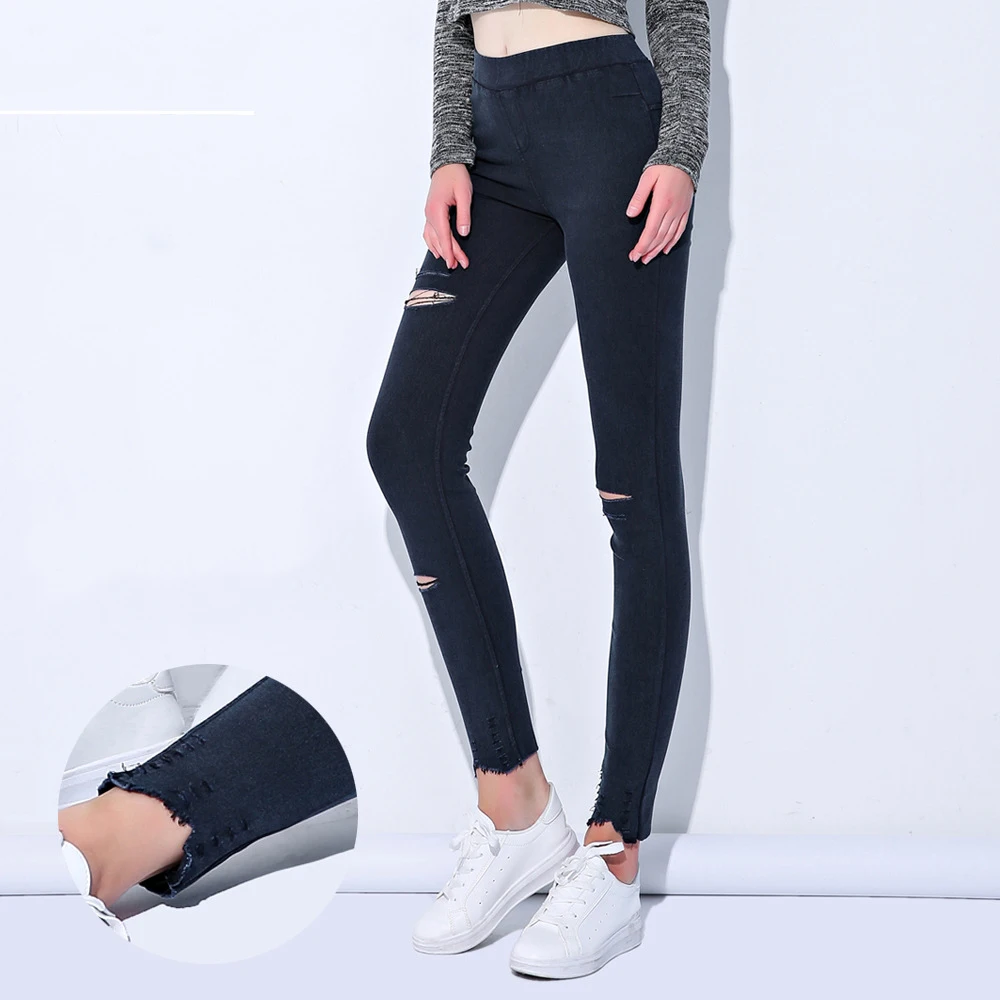 חור אלסטי ג 'ינס חותלות ז' אן מכנסיים ג 'ינס ג' ינס נשים Slim סקיני מכנסי עיפרון Ripped ג 'ינס לנשים